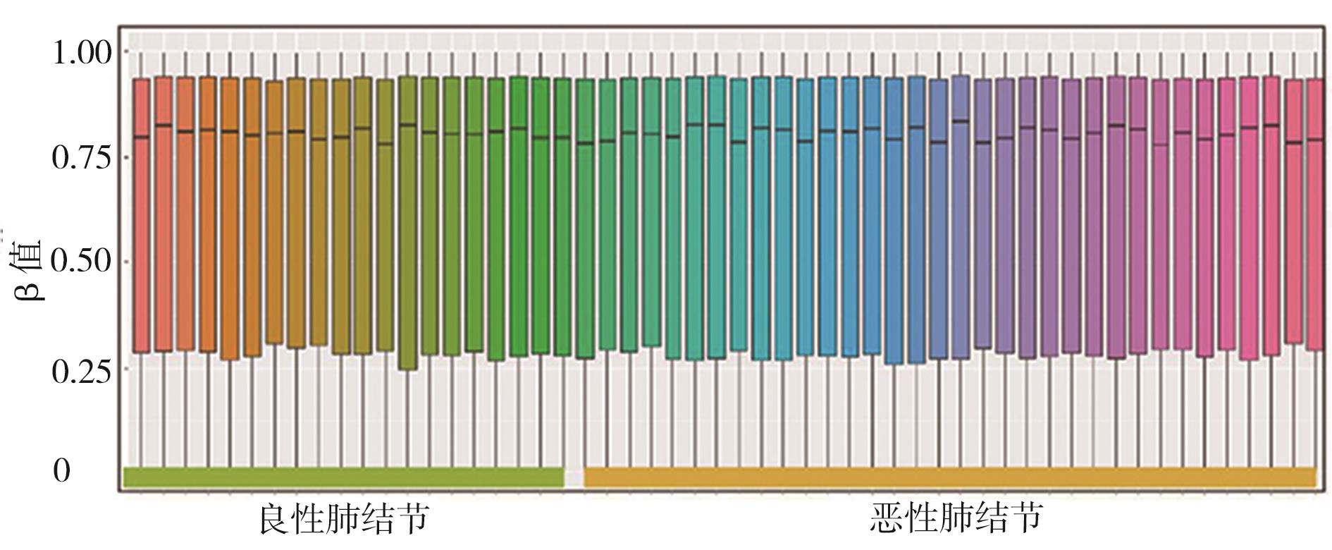 摘要:目的 探讨基于外周血单个核细胞(peripheral blood mononuclear cells,PBMCs)的DNA差异甲基化修饰位点在肺良恶性结节临床鉴别诊断中的价值。方法 采用850k甲基化芯片检测20例良性肺结节和34例恶性肺结节患者PBMCs的全基因组甲基化状态,初步构建PBMCs来源的良恶性肺结节特异性甲基化图谱并获得差异甲基化位点(differentially methylated positions,DMPs),对DMPs所在的基因进行基因本体(gene ontology,GO)分析及京都基因与基因组百科全书(Kyoto encyclopedia of genes and genomes,KEGG)分析。利用LASSO回归分析方法对DMPs进行统计筛选。将36例良性肺结节患者和84例恶性肺结节患者随机分成2组队列(测试队列和验证队列),通过焦磷酸测序方法对所选的位点进行分析验证,并采用受试者工作特征(receiver operating characteristic,ROC)曲线进行分析,计算ROC曲线下面积(area under the curve,AUC),评估其对肺良恶性结节的预测效能。结果 发现队列的良恶性肺结节患者PBMCs差异甲基化图谱具有明显差异。以Δβ>0.06,adjust P<0.01作为预筛选条件共得到421个DPMs。使用LASSO回归分析进一步筛选得到6个CpG位点。根据Pearson 相关分析,以及进一步去除具有引物错配风险及引物合成困难的位点,得到cg05460181(AUC=0.793,P<0.0001)和cg08721802(AUC= 0.893,P<0.0001)2个位点。测试阶段,通过焦磷酸测序测试2个位点在16例良性肺结节患者及34例恶性肺结节患者中的甲基化水平,发现cg08721802位点对肺良恶性结节具有较高的诊断价值(AUC=0.778,敏感度=85.29%,特异度=56.25%,P<0.01)。验证阶段,在另一个包含20例良性肺结节患者及50例恶性肺结节患者的独立样本集中对cg08721802的甲基化水平进行检测,发现其对区分良恶性肺结节仍具有临床价值(AUC=0.768,敏感度=84%,特异度=50%,P<0.01),cg08721802位点诊断效能明显高于传统肿瘤标志物,cg08721802位点与CEA结合明显提高了对大小为6~20 mm的结节诊断价值。结论 cg08721802甲基化水平在良恶性结节患者中具有明显差异,可以作为良恶性肺结节鉴别诊断的新型分子标志物。