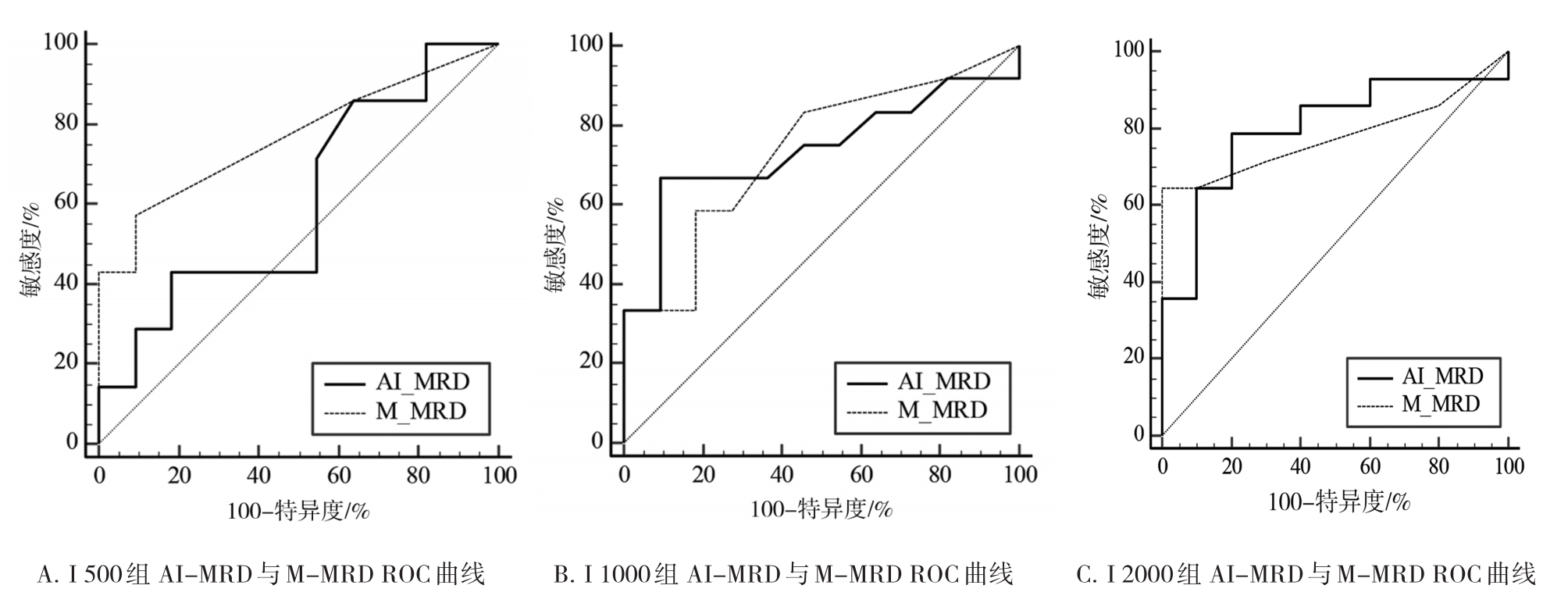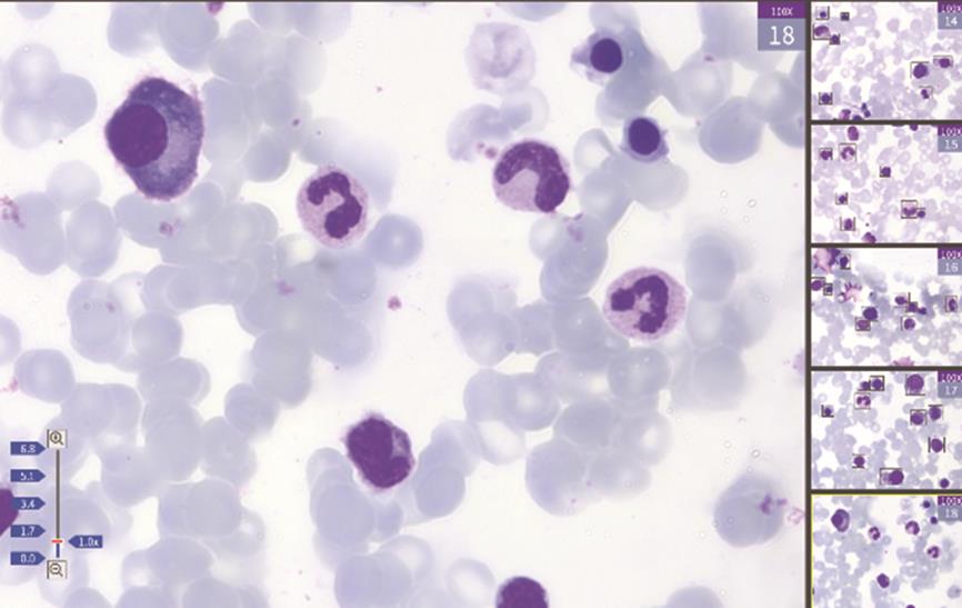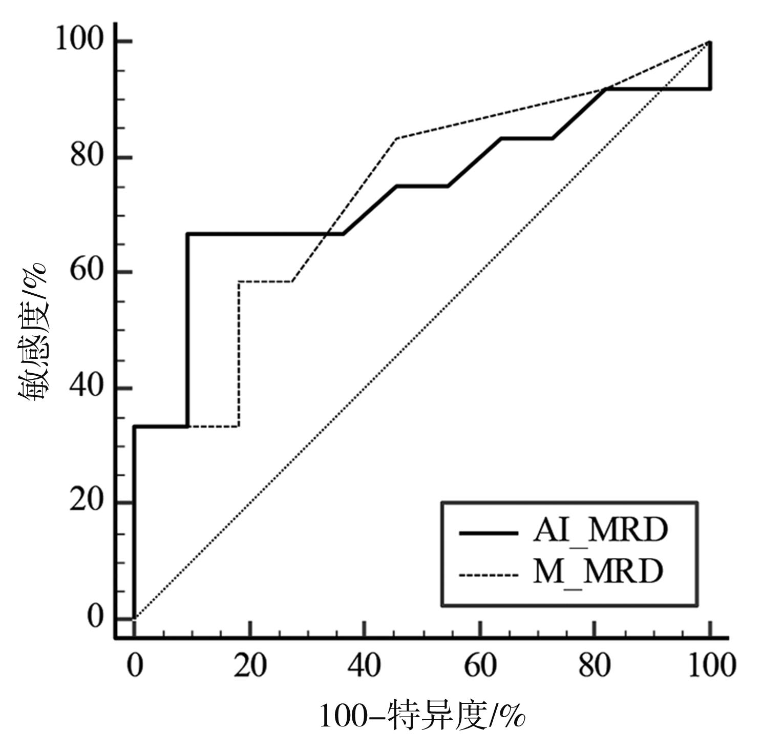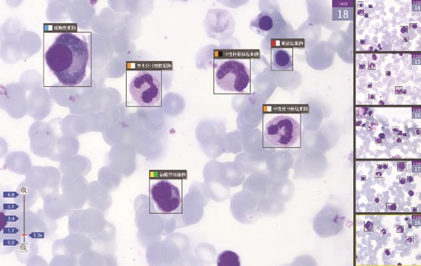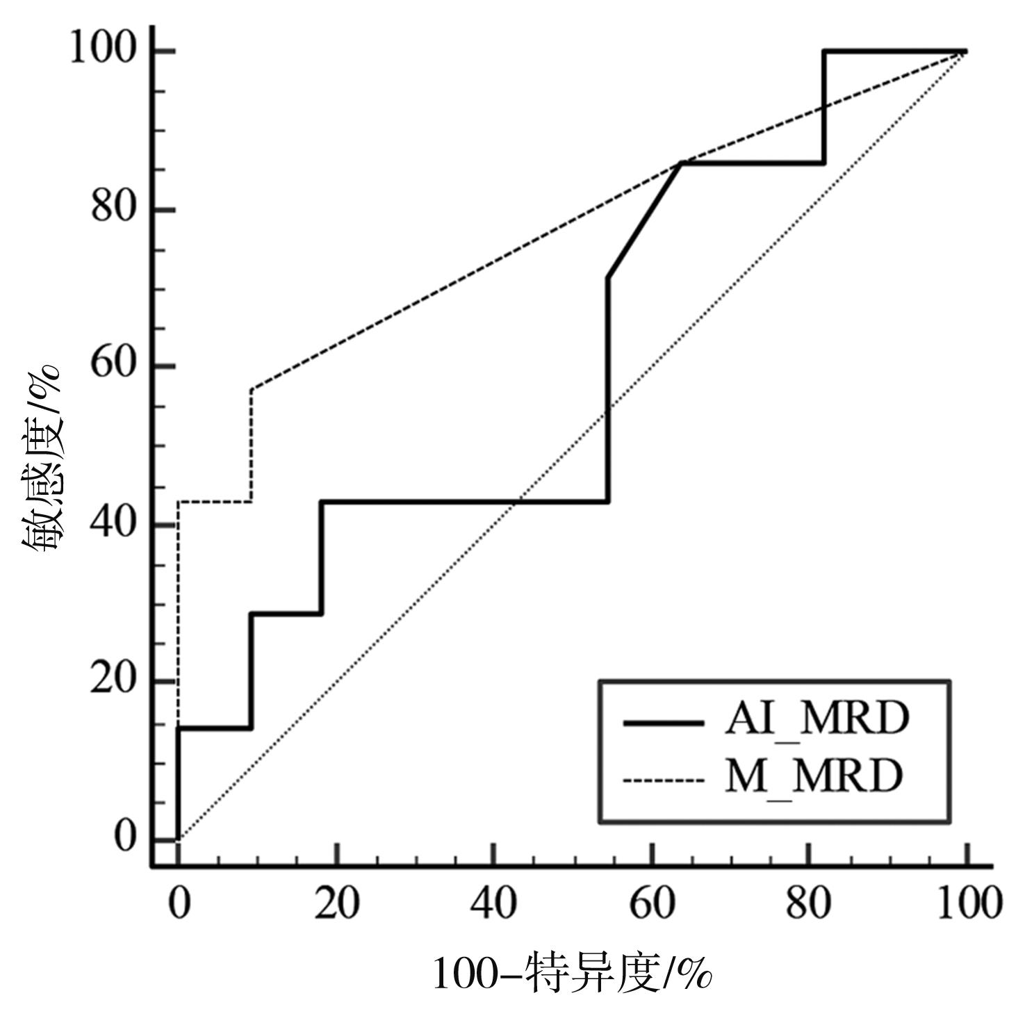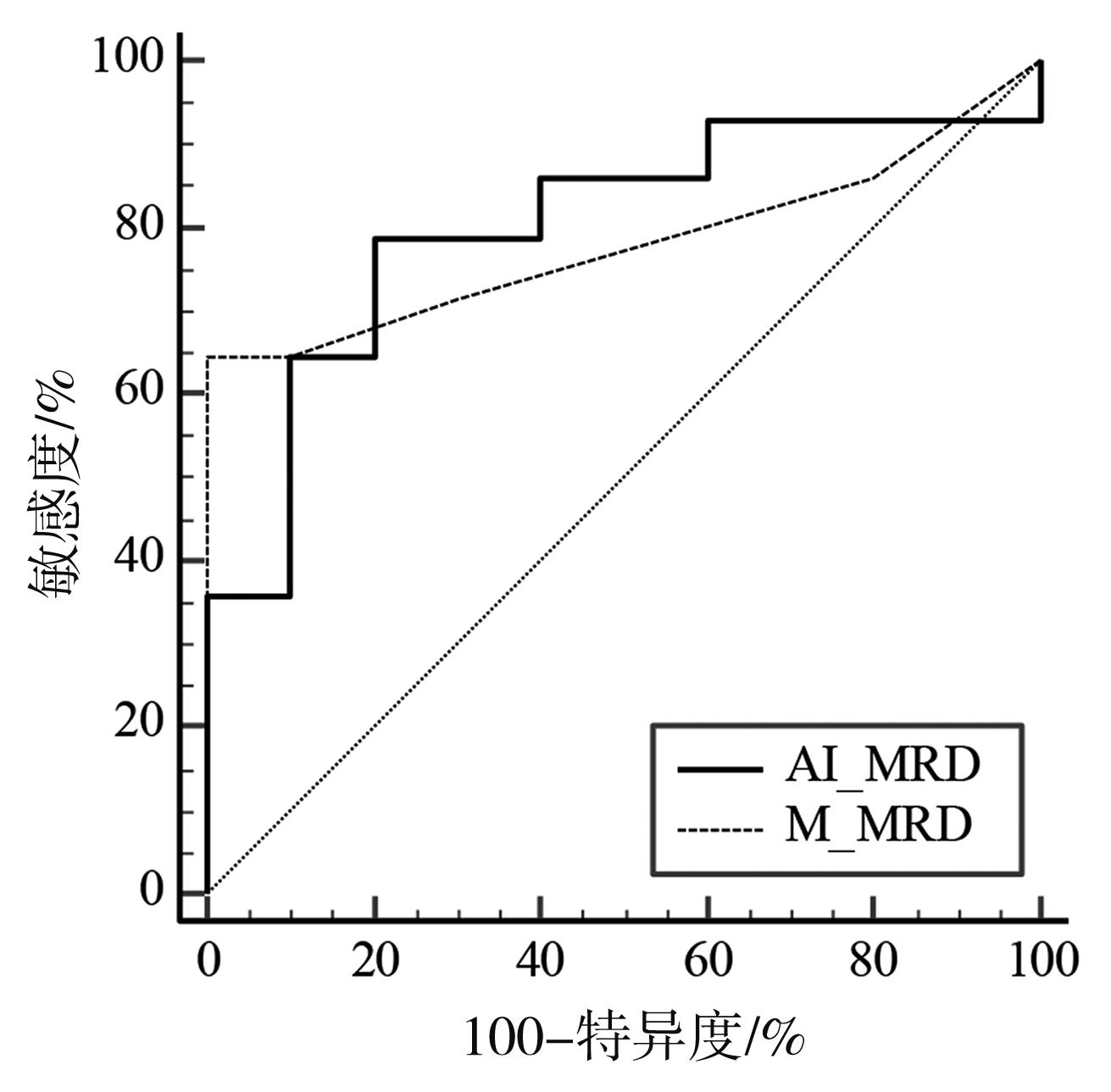 摘要:目的 探索人工智能骨髓细胞识别系统Morphogo应用于多发性骨髓瘤微小残留病(minimal residual disease,MRD)检测的临床价值及面临问题。方法 收集已经由流式细胞术(multiparameter flow cytometry,MFC)检查后明确微小残留病结果的病例65例,调取其留存的骨髓瑞氏染色涂片,通过基于人工智能(artificial intelligence,AI)平台的分析系统Morphogo对所有骨髓涂片进行全自动扫描及细胞分类。AI及细胞形态学多发性骨髓瘤MRD阳性阈值设为浆细胞比例大于4.4%。按AI自动识别细胞数量将病例分为I 500组、I 1000组、I 2000组,每组病例的人工智能微小残留病(AI-MRD)、细胞形态学(morphology)微小残留病(M-MRD)和流式细胞术微小残留病(MFC-MRD)结果两两行Kappa一致性检验,并计算各组敏感度、特异度、准确度。分别以MFC-MRD和M-MRD结果为金标准绘制AI-MRD的受试者工作特征(receiver operating characteristic,ROC)曲线并计算其曲线下面积(area under the curve,AUC)。结果 分组后AI-MRD vs. MFC-MRD 和AI-MRD vs. M-MRD的Kappa值、敏感度、特异度、准确度、AUC均随识别细胞数量的增加而增高,其中I 2000组AI-MRD vs. MFC-MRD的Kappa一致性检验结果为Kappa=0.500(P=0.013),敏感度为71%,特异度为80%,准确度为75%;AI-MRD vs. M-MRD的Kappa一致性检验结果为Kappa=0.667(P=0.001),敏感度为100%,特异度为75%,准确度为83%。以MFC-MRD结果为标准,I 2000组AI-MRD的ROC AUC=0.800(P=0.002,95%CI=0.588~0.934),M-MRD的ROC AUC=0.779(P=0.005,95%CI=0.564~0.921)。结论 人工智能骨髓细胞识别系统Morphogo检测多发性骨髓瘤MRD具有细胞识别准确度高、速度快、成本低等特点,后续开发中应加入细胞组化染色、细胞免疫等技术提高人工智能多发性骨髓瘤微小残留病诊断的准确率。