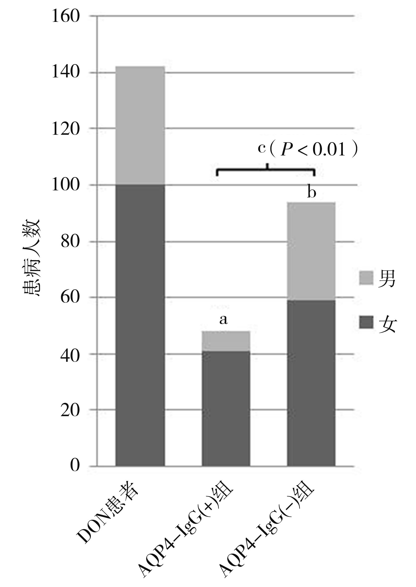 摘要:目的 比较142例脱髓鞘性视神经炎(demyelinated optic neuritis,DON)患者血清或脑脊液中AQP4-IgG表达与其临床特征的关系。方法 回顾性收集2016年1月至2020年10月于陆军军医大学第一附属医院眼科收治的142例DON患者AQP4-IgG检验结果,对AQP4-IgG阳性及阴性患者的临床资料进行分析。结果 ①检测到AQP4-IgG阳性者48例(33.8%),女性与男性比为5.9∶1,双眼同时发病者31例(64.6%),发病时LogMAR视力为0.48±0.64,随访结束时LogMAR视力为0.55±0.65。②检测到AQP4-IgG阴性者94例(66.2%),女性与男性比为1.7∶1,双眼同时发病者53例(56.4%),发病时LogMAR视力为0.54±0.61,随访结束时LogMAR视力为0.39±0.49。③AQP4-IgG阳性女性患者比例明显高于AQP4-IgG阴性患者(χ2=7.827,P<0.01);二者双眼患病率不具有统计学差异(χ2=0.884,P>0.05);二者在发病时LogMAR视力并无统计学差异(t=-0.721,P>0.05),但AQP4-IgG阳性患者视力预后更差(t =2.058,P<0.05)。AQP4-IgG阳性患者血沉升高(χ2=5.403,P<0.05),以及合并自身抗体结果阳性的比例比AQP4-IgG阴性患者更高(χ2=5.231,P<0.05),二者均具有统计学差异。结论 AQP4-IgG阳性的视神经脊髓炎谱系疾病患者女性发病率更高,视力预后更差,且可能合并自身抗体结果异常或者自身免疫性疾病。根据AQP4-IgG检测结果,准确地进行临床分型对治疗方案选择及预后分析具有重要指导意义。