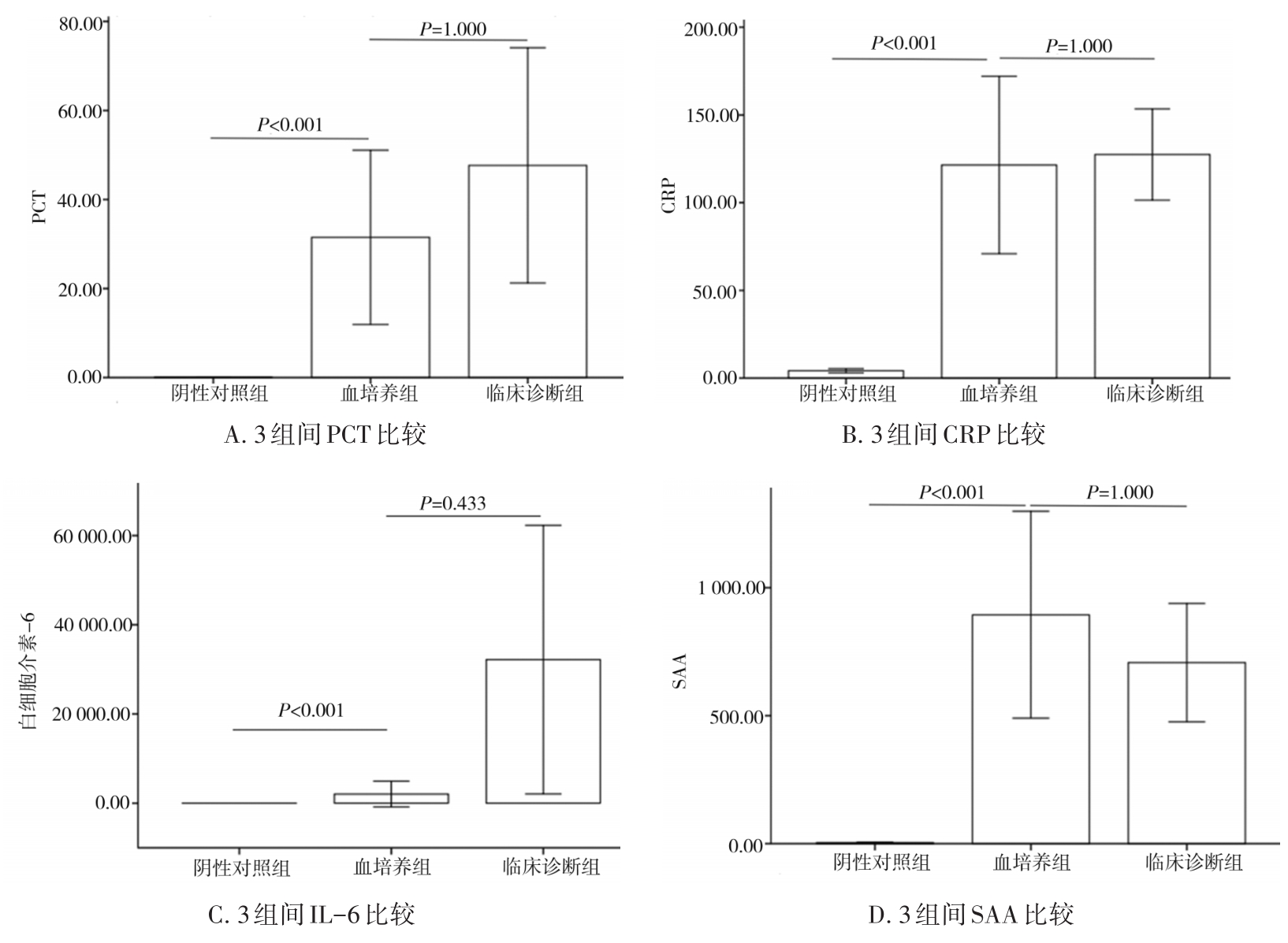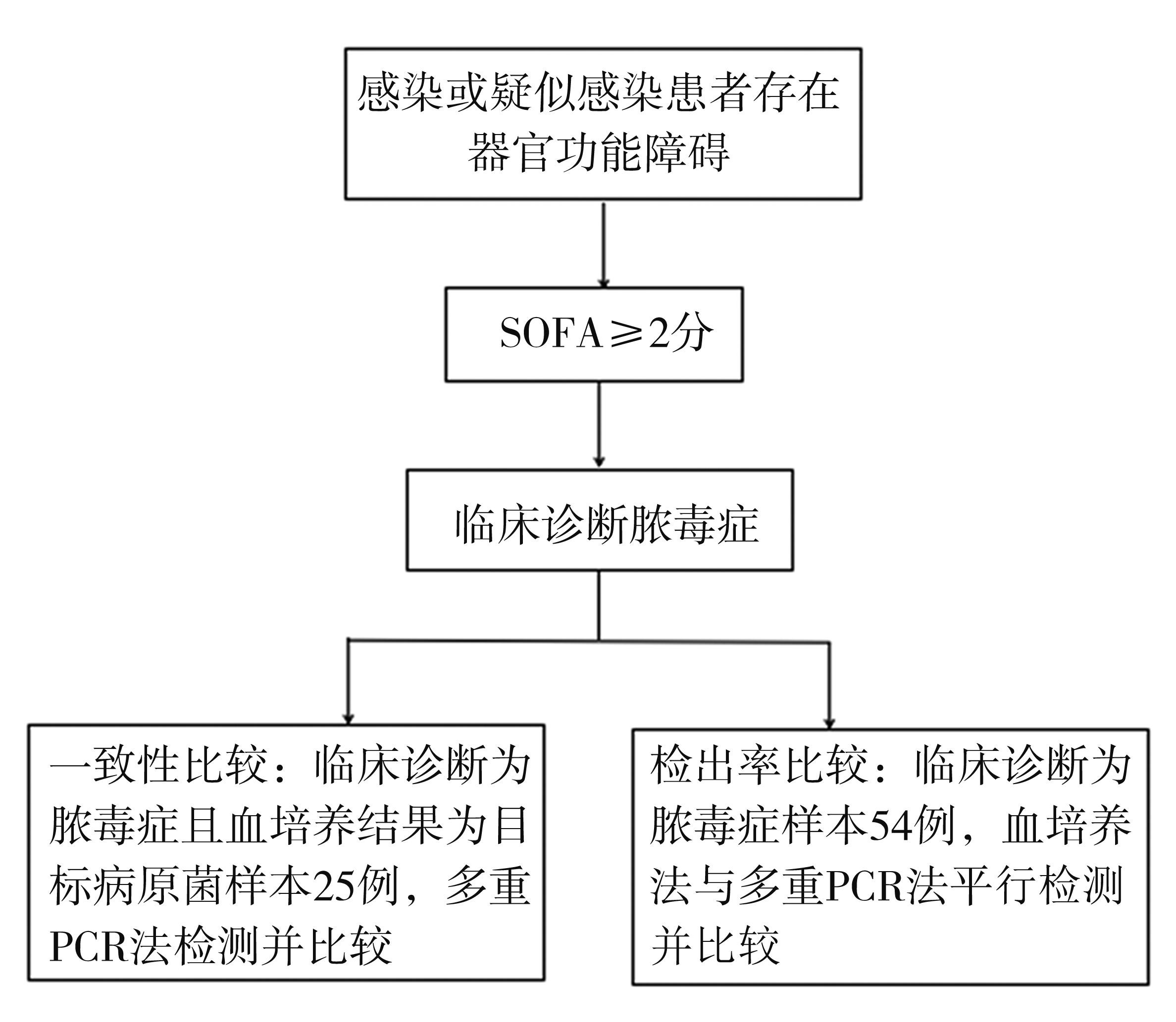 摘要:目的 建立一种基于多重实时荧光定量聚合酶链反应(multiple real-time fluorescence quantitative polymerase chain reaction,多重PCR)技术的检测体系,快速、特异检测脓毒症患者血液中的病原菌。方法 分析血液标本分离菌主要菌种分布,绘制脓毒症特异性病原微生物谱。同时根据保守区序列设计特异性引物,构建多重PCR检测反应体系。收集脓毒症患者静脉全血样本79例,健康体检者样本(阴性样本)40例,用所建立的检测体系进行鉴定,并与血培养方法比较。结果 多重PCR法缩短检出时间至3 h,是血培养法的1/16。多重PCR法对目标病原菌样本符合率为88%(22/25),阴性样本符合率为100%(20/20),总符合率为94%,2种方法对目标病原菌的检出差异无统计学意义(P=0.250),且一致性良好(Kappa=0.867,P<0.05)。多重PCR法与血培养法对临床诊断脓毒症样本的检出率分别为23.0%(17/74)及14.9%(11/74),2种方法间检出率差异有统计学意义(P=0.031)。结论 与经典的“金标准”血培养法相比,本项目构建的多重PCR法检测时间短、符合率好、检出率更高,可为脓毒症患者更早诊断和治疗提供可靠依据。