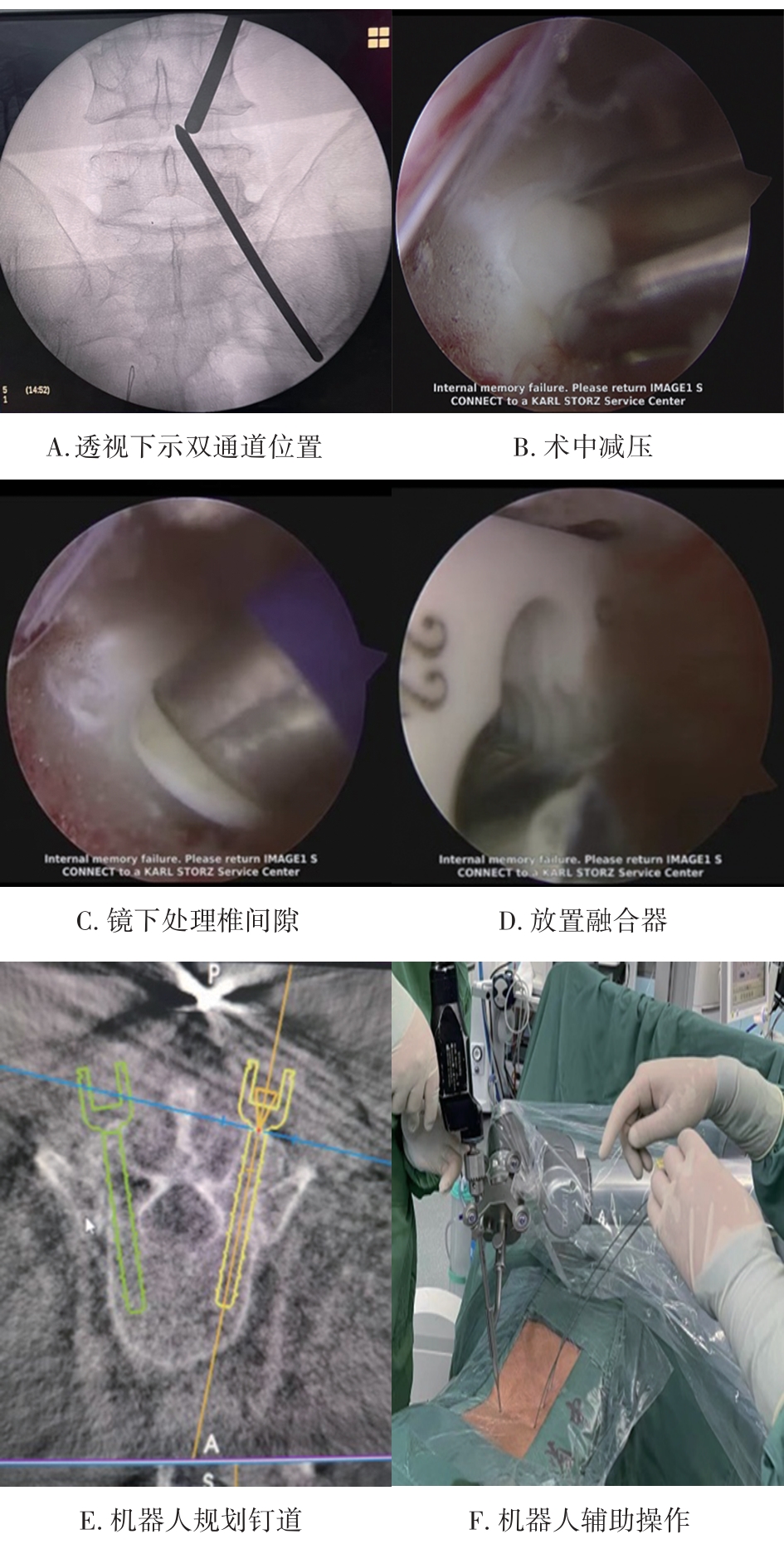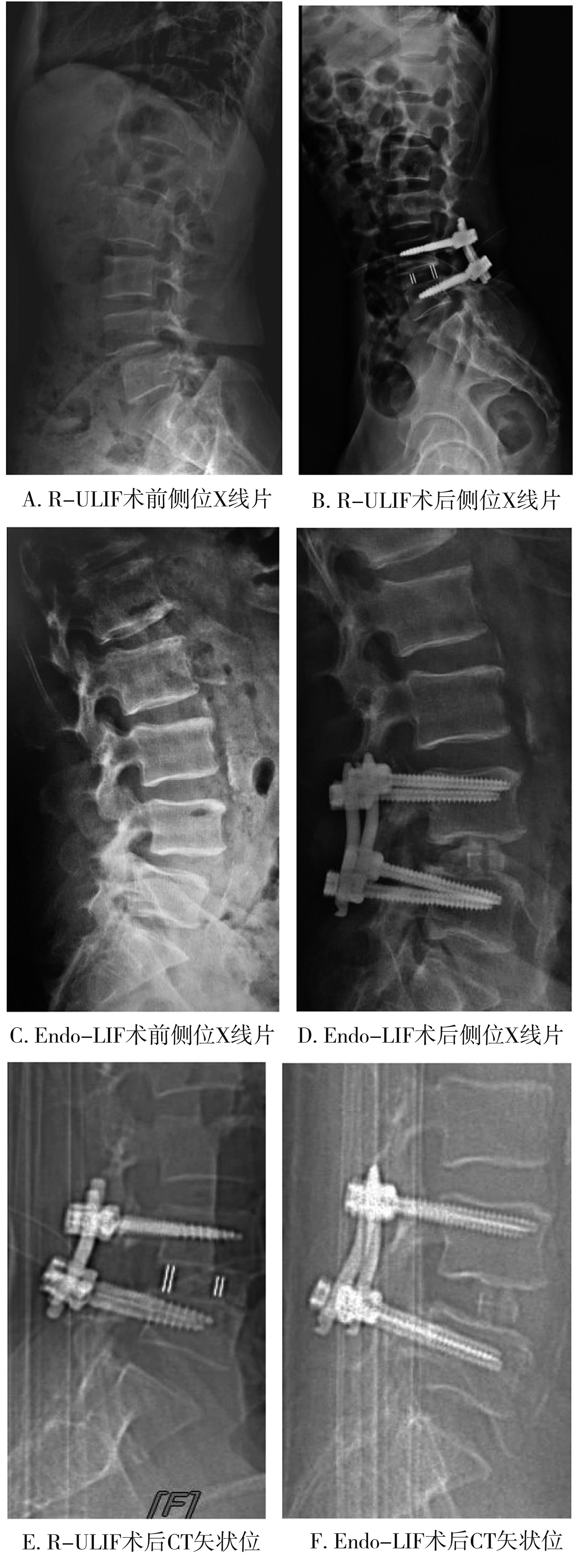 摘要:目的 通过与经皮脊柱内镜下腰椎减压融合内固定术进行比较,探讨机器人辅助单侧双通道内镜在腰椎减压融合内固定术中的运用及优势。方法 回顾性分析2021年2月至2022年6月甘肃省中医院脊柱疾病诊疗中心收治的26例需行腰椎减压融合术的患者,根据手术方式分为机器人辅助单侧双通道内镜行腰椎减压融合内固定术(Robot-assisted unilateral biportal endoscopy for lumbar interbody and fusion,R-ULIF)、经皮脊柱内镜辅助下腰椎减压融合内固定术(endoscopic lumbar interbody fusion,Endo-LIF)2组,R-ULIF组采用R-ULIF,Endo-LIF组采用Endo-LIF。分析并比较2组患者一般资料、2组透视次数、手术时间、出血量、术后住院时间、置钉优良率、融合率、并发症发生率、术后疼痛视觉模拟评分(visual analogue scale,VAS)、Oswestry功能障碍指数评分(oswestry dysfunction index,ODI)、MacNab标准疗效评价等指标。结果 所有患者均顺利完成手术。R-ULIF组13例,其中男6例,女7例,年龄(53.92±9.86)岁;病程33.0(6.1,81.0)个月,手术时间(187.85±10.18) min,透视次数(7.92±0.95)次,术中出血量(54.54±4.72) mL,术后住院时间(3.92±0.86) d,置钉准确率98.1%(51/52),融合率92.3%,无并发症发生(0%);Endo-LIF组13例,其中男5例,女8例,年龄(52.38±10.89)岁;病程48.0(6.0,120.0)个月,手术时间(175.15±23.81) min,透视次数(13.77±1.48)次,术中出血量(104.31±6.81) mL,术后住院时间(5.23±1.01) d,置钉准确率76.9%(40/52),融合率84.6%,1例男性患者发生了硬膜撕裂,1例女性患者发生了融合器下沉,并发症发生率为15%。2组患者相比,R-ULIF组透视次数、术中出血量、术后住院时间小于Endo-LIF组(P<0.05)。2组患者的VAS评分和ODI评分在各时间点均明显降低(P<0.05);R-ULIF组患者术后1个月和3个月时ODI评分优于Endo-LIF组(P=0.017/P=0.047),在术前、术后1周组间差异无统计学意义(P>0.05)。术后6个月采用 MacNab标准评价疗效,R-ULIF组获优9例、良2例、中1例、差1例,优良率84.6%;Endo-LIF组获优7例、良3例、中2例,差1例,优良率76.9%。结论 机器人辅助单边双通道内镜行腰椎减压融合术治疗腰椎间盘突出合并腰椎失稳,短期内临床疗效安全可靠,置钉成功率高,辐射暴露少,术中出血量少,患者住院时间少,值得临床推广。