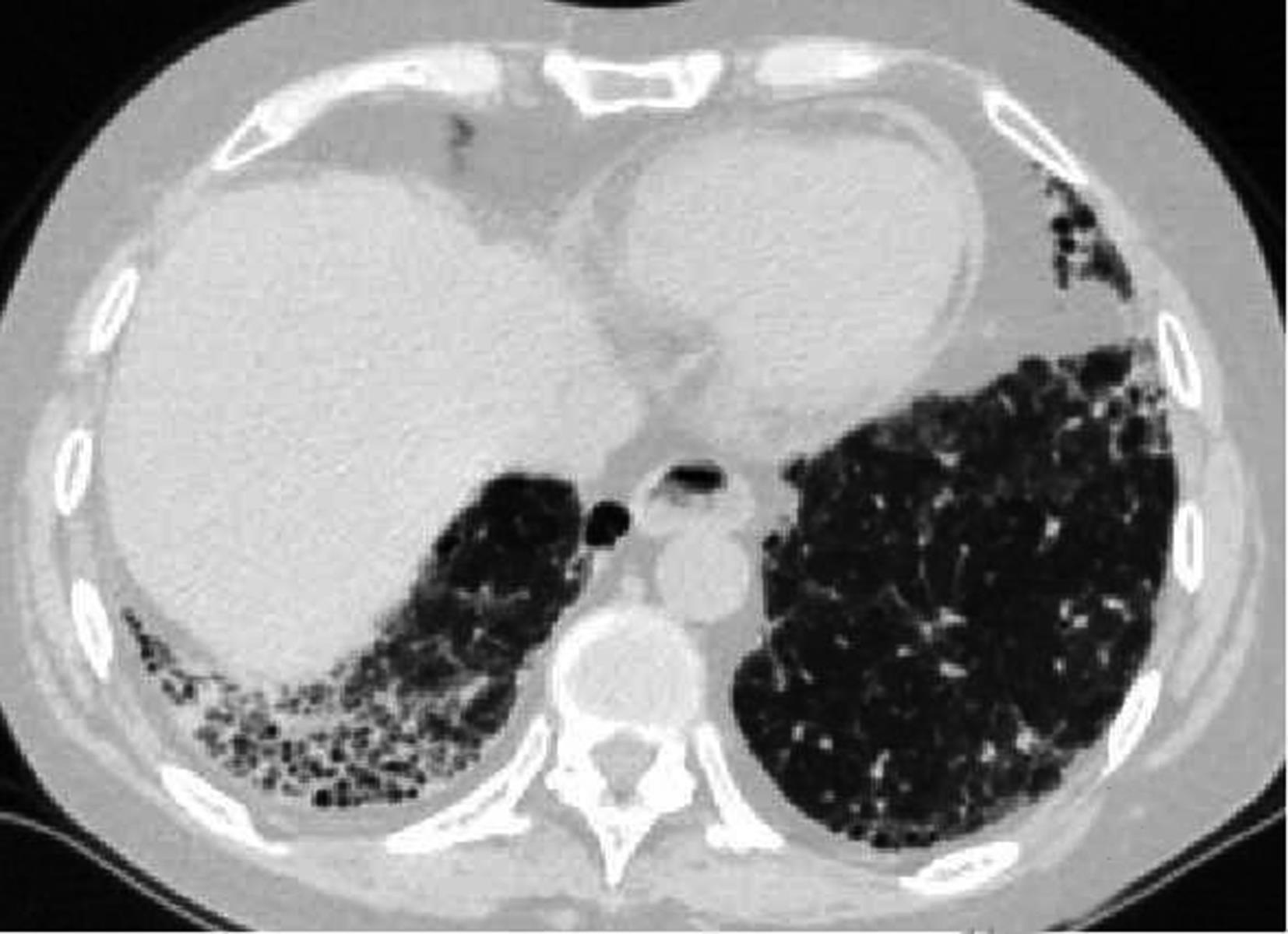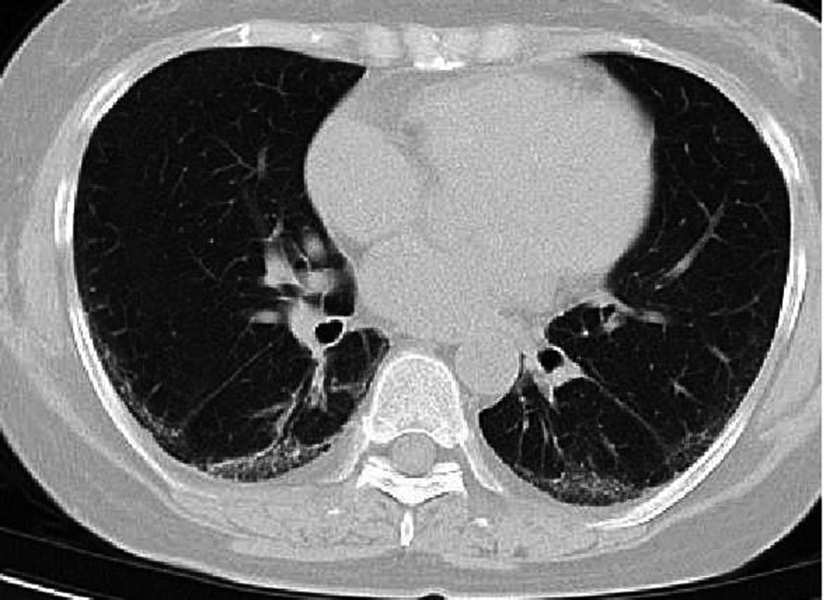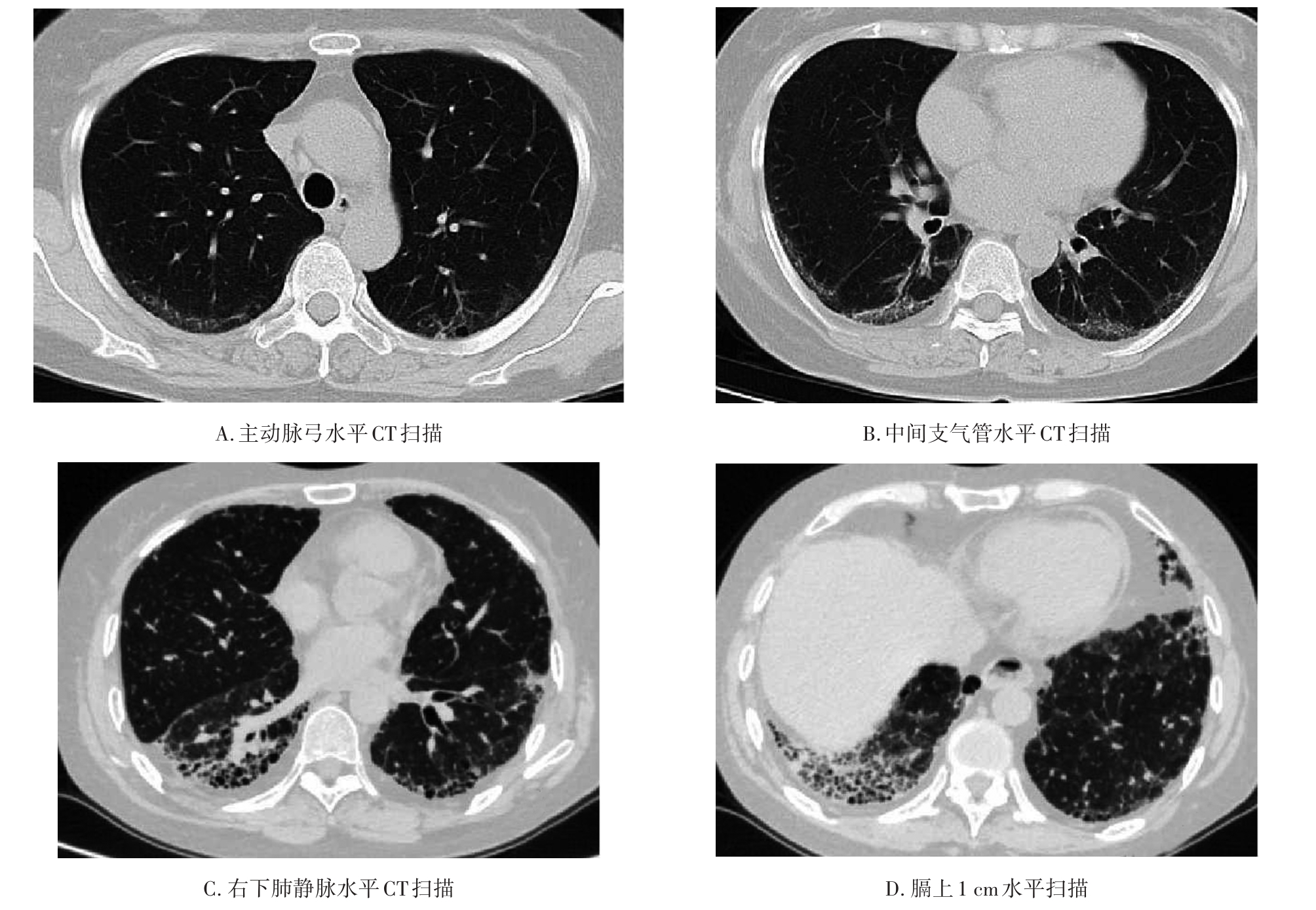 摘要:目的 探讨系统性红斑狼疮合并间质性肺病的CT特征与疾病活动度的相关性。方法 纳入131例系统性红斑狼疮相关间质性肺病患者。分析其疾病活动度评分、影像学特征及高分辨CT(high resolution computed tomography,HRCT)肺间质纤维化Kazerooni评分。采用Spearman秩和相关系数检验分析各评分之间的相关性。结果 Kazerooni评分法中的磨玻璃评分与系统性红斑狼疮疾病活动度-2000评分(systemic lupus erythematosus disease activity index-2000,SLEDAI-2000)呈正相关,差异有统计学意义(rs=0.388,P<0.001)。而纤维化评分与SLEDAI-2000评分之间差异无统计学意义(P=0.837)。弥漫性肺泡损伤(diffuse alveolar damage,DAD)组磨玻璃评分得分最高,寻常型间质性肺炎(usual interstitial pneumonia,UIP)组纤维化评分得分最高,差异有统计学意义(均P<0.001)。比较不同间质性肺病(interstitial lung disease,ILD)类型之间SLEDAI-2000评分差异无统计学意义(P>0.05)。结论 胸部HRCT可有助于更全面地评估系统性红斑狼疮疾病情况,对制定治疗方案具有重要意义。