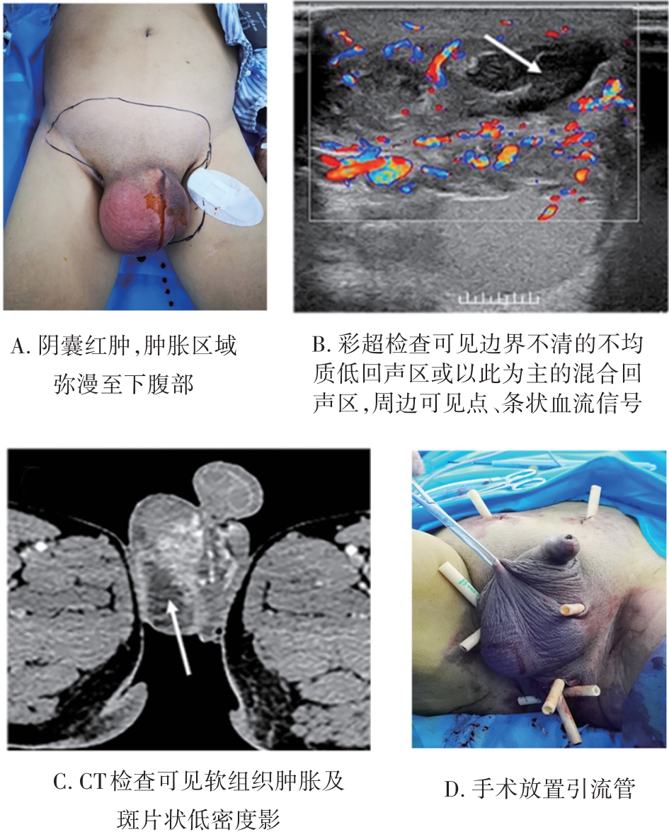摘要:目的 探讨并分析阴囊脓肿患者的临床特点,为临床诊疗提供依据。方法 借助电子病案系统对重庆医科大学附属第二医院2016年1月至2021年9月收治的阴囊脓肿患者的临床资料进行回顾性分析总结。结果 共纳入24例阴囊脓肿患者,平均年龄(49.29±17.05)岁。主要症状包括阴囊胀痛、红肿、破溃流脓甚至全身发热症状。合并疾病以附睾炎为主(7例,29%)。16例患者行脓液培养,其中11例为阳性(69%),致病菌主要为大肠埃希氏菌、葡萄球菌及厌氧菌等。患者用抗生素保守治疗者4例(17%);行脓肿切开引流+抗生素治疗者20例(83%),其中4例进行了病灶探查切除,3例术后病理活检示结核性肉芽肿性炎,予调整为抗结核药物治疗(13%)。24例患者病情均明显好转出院,平均住院时间为(12.96±7.53) d。1例患者痊愈出院3年后复发。结论 阴囊脓肿一旦确诊应尽早行切开引流并给予强有力的抗感染治疗。对患者加强健康卫生观念教育有助于预防此类疾病发生。