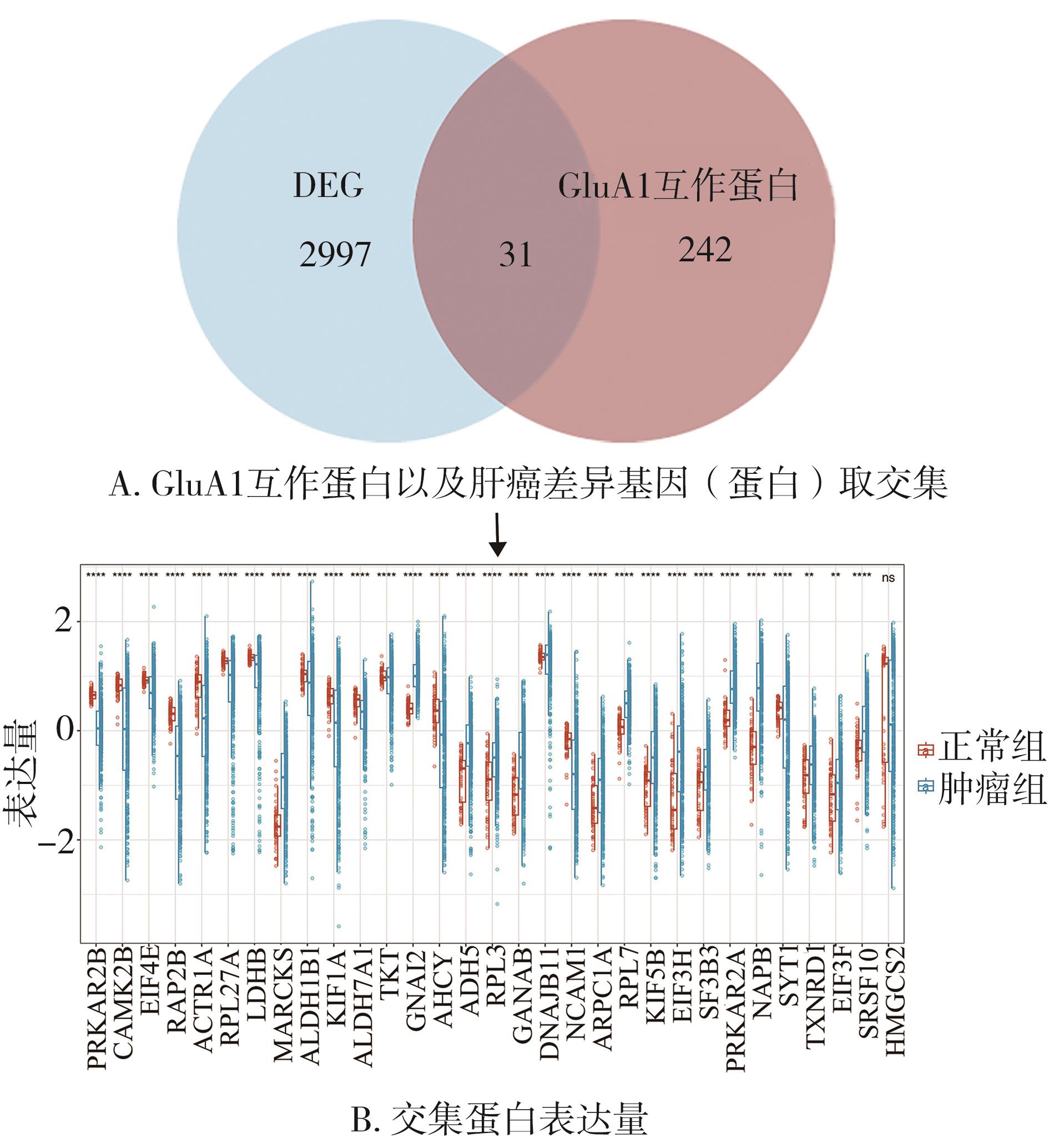 摘要:目的 探讨AMPA型谷氨酸受体亚基1(glutamate A1,GluA1)相互作用蛋白GNAI2、SRSF10对HCC药物相关靶点、预后指标及诊断模型的作用和影响。方法 蛋白质组学方法获得GluA1相互作用蛋白。Xena数据库(