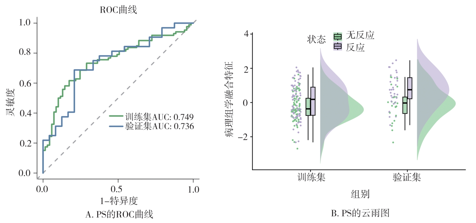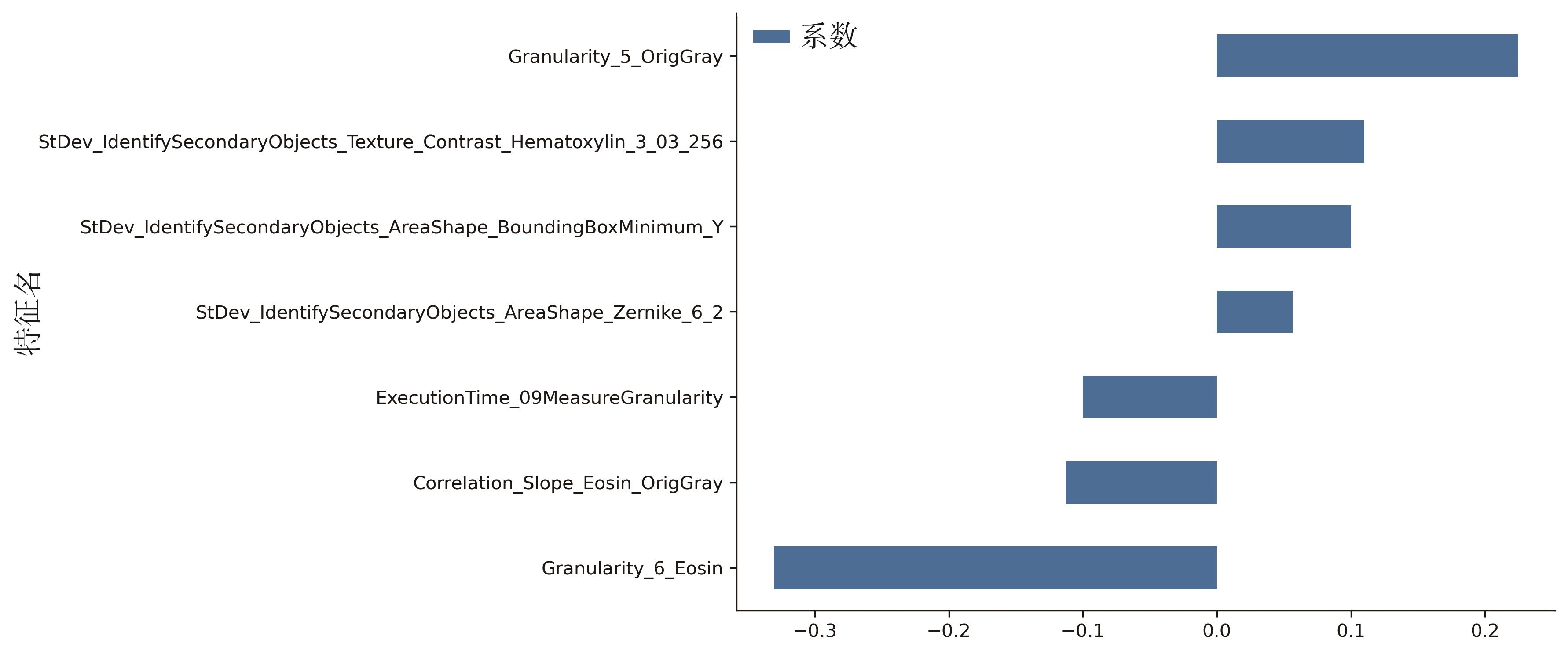 摘要:目的 利用病理组学的方法开发用于预测乳腺癌(breast cancer,BC)患者新辅助化疗(neoadjuvant chemotherapy,NAC)反应的新型标志物。方法 回顾性纳入211例西南医科大学附属医院的非特殊浸润性BC患者(训练组:155例,验证组:56例),使用CellProfiler软件提取患者数字病理切片中的高维病理组学特征,利用Mann-Whitney U检验、Spearman相关系数和最小绝对值收敛和选择算子(least absolute shrinkage and selection operator,LASSO)算法进行特征逐层筛选。筛选后的最优特征通过支持向量机(support vector machine,SVM)方法在训练集中开发了病理组学特征(pathomics signature,PS)并在独立验证集中进行验证。PS与单因素有意义的临床病理因素(P<0.05)纳入多因素逻辑回归进行进一步验证。结果 PS的曲线下面积(area under the curve,AUC)为0.749(95%CI=0.672~0.827),验证集中AUC为0.737(95%CI=0.604~0.870)。多因素逻辑回归的结果显示,PS(OR=2.317)与人表皮生长因子受体2(human epidermal growth factor receptor 2,HER2)(OR=4.018)是BC患者NAC反应的独立预测因素。结论 PS可以帮助临床医生在治疗前准确预测NAC的反应,促进BC患者的个性化治疗。