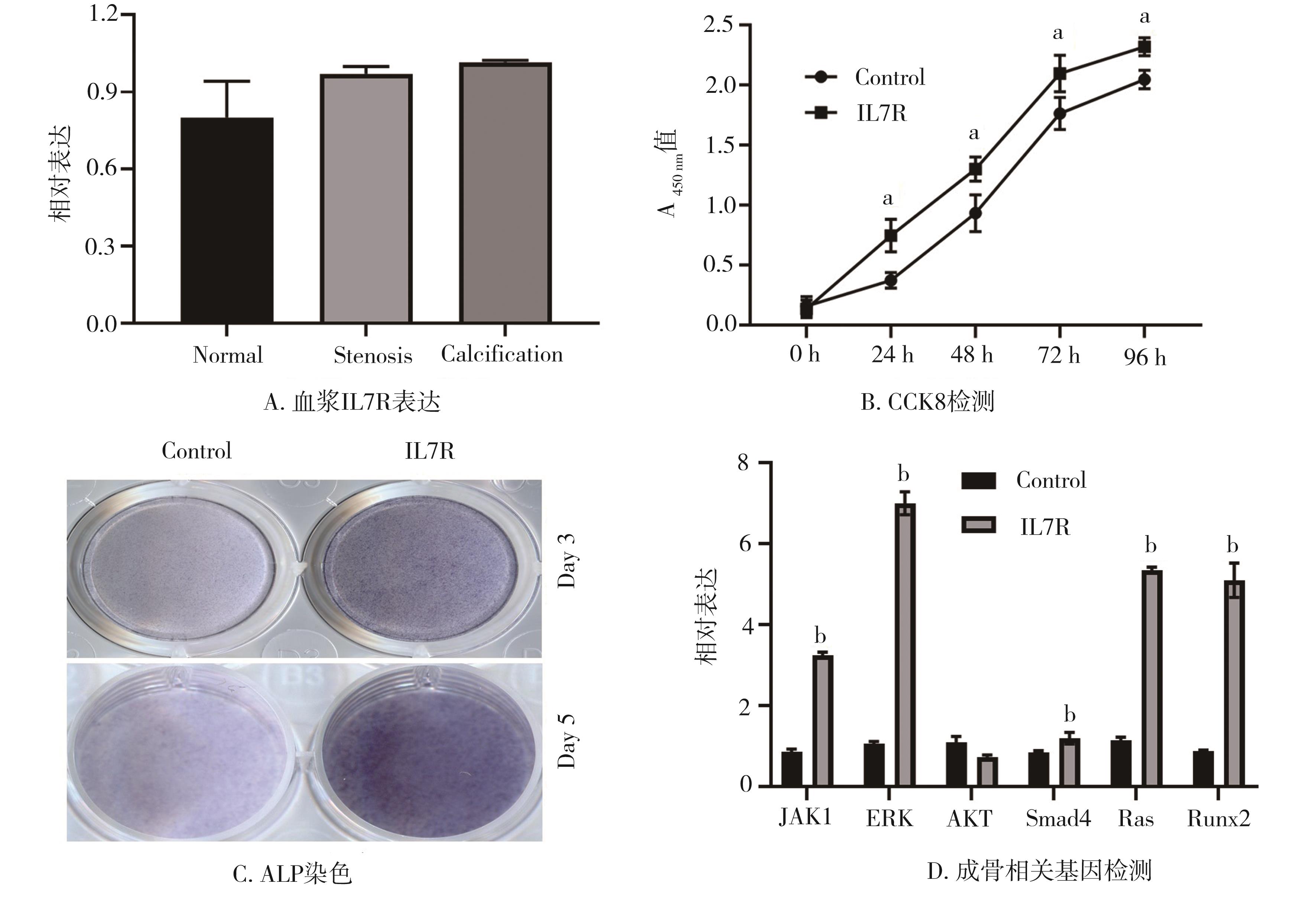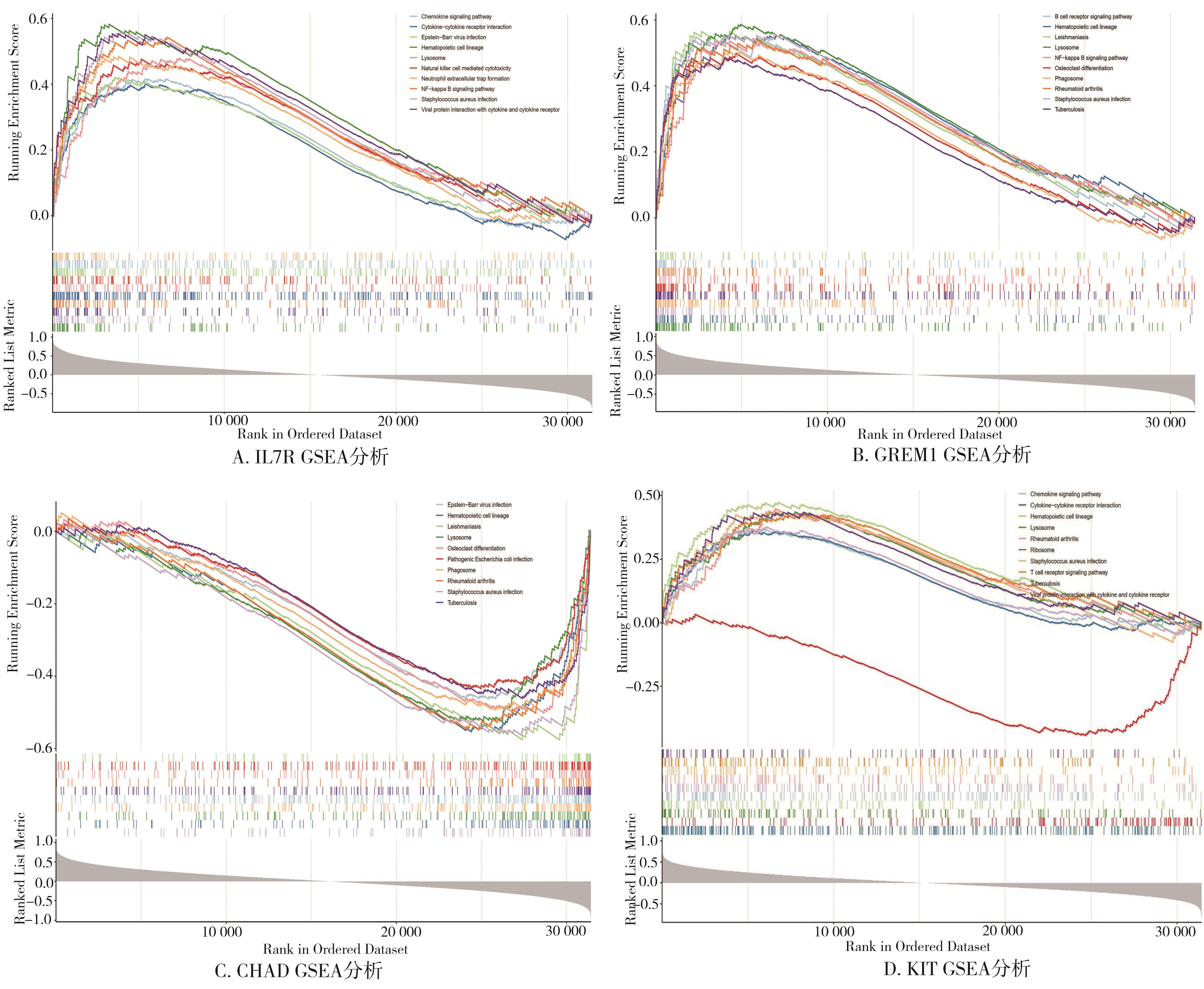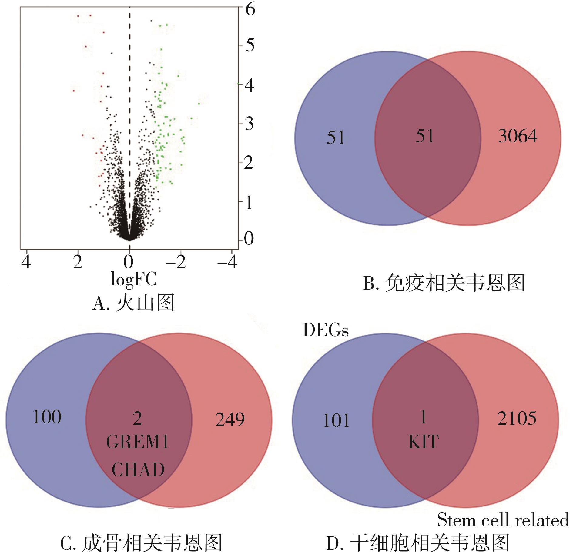 摘要:目的 通过机器学习方式从免疫、干细胞、成骨3个层面寻找主动脉瓣膜钙化潜在的诊断标志物。方法 利用R语言将高通量基因表达数据库(Gene Expression Omnibus,GEO)中GSE51472、GSE12644和GSE55492 3个数据集的数据进行均一化后合并分析,得到差异表达基因。从Amigo数据库下载免疫、干细胞、成骨相关基因集分别与差异基因取交集,得到钙化瓣膜组织中异常表达的免疫、干细胞、成骨相关基因。利用机器学习方法对差异基因进行深度学习,寻找潜在的诊断生物标志物。进行基因富集(gene set enrichment analysis,GSEA)分析。临床标本结合细胞学实验验证诊断标志物的应用价值。结果 3个数据集合并分析得到102个差异基因,与免疫相关的有51个,与干细胞相关的有1个,与成骨相关的有2个。GSEA分析显示无论是免疫相关基因还是干细胞、成骨相关基因均涉及免疫调控通路。多种机器学习合并分析结果显示白介素受体7(interleukin 7 receptor,IL7R)最具有诊断钙化性主动脉瓣病的价值,但临床标本并不支持生物信息分析结果。细胞实验显示IL7R可以促进瓣膜间质细胞增殖、成骨钙化。结论 IL7R可能不是外周血诊断钙化性主动脉瓣疾病(calcific aortic valve disease,CAVD)的标志物,但是它在CAVD疾病演变过程中可能有重要作用,因此进一步探究IL7R在CAVD中的作用很有必要。