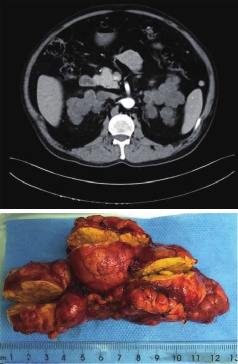 摘要:目的 分析原发性双侧肾上腺大结节增生(primary bilateral macronodular adrenal hyperplasia,PBMAH)患者临床特征及不同手术方式的疗效。方法 回顾性分析从2011年1月至2021年8月就诊于重庆医科大学附属第一医院被诊断为单侧肾上腺腺瘤(unilateral adrenal adenoma,UAA)所致促肾上腺皮质激素(adrenocorticotropic hormone,ACTH)非依赖性库欣综合征(Cushing’s syndrome,CS)患者119例和PBMAH患者34例的临床表现、代谢相关疾病、激素分泌水平和影像学特征等临床资料,通过与UAA患者比较以分析PBMAH的临床特征,同时比较PBMAH患者手术前后临床表现、代谢性疾病、激素分泌水平等变化情况以评估不同手术方式对PBMAH的疗效。结果 PBMAH患者与UAA患者临床特征有较明显差异。PBMAH组诊断时平均年龄为(49.8±13.1)岁,明显高于UAA组的(43.0±11.6)岁(P=0.016);PBMAH组男女发病率相似,而UAA组女性明显高于男性(P<0.001);PBMAH患者主要表现为亚临床库欣综合征(subclinical Cushing’s syndrome,SCS)(55.9%),以高血压、糖尿病等代谢相关疾病最为常见。在激素分泌水平方面,PBMAH组皮质醇增高水平明显低于UAA组,尤其是16:00、24:00血清皮质醇和24 h尿游离皮质醇;10例患者具有家族遗传病史并对其行基因检测提示ARMC5基因突变。影像学检查显示双侧肾上腺弥漫性大结节样增生,而UAA患者多为单侧单发腺瘤。治疗方面,SCS PBMAH患者行单侧肾上腺切除术临床缓解率高(100%),而伴库欣貌的PBMAH患者单侧切除术后临床缓解率为50%,16.7%的患者缓解后复发。单侧肾上腺切除术后肾上腺皮质功能不全的发生率(28.6%)明显低于双侧肾上腺手术(100%)。结论 PBMAH是一个家族遗传性疾病,发病年龄较高,常表现为SCS,多以高血压、糖尿病为首发症状。PBMAH伴SCS患者建议行单侧肾上腺全切除术,伴有明显CS症状患者建议行一侧全切对侧大部分切除术。