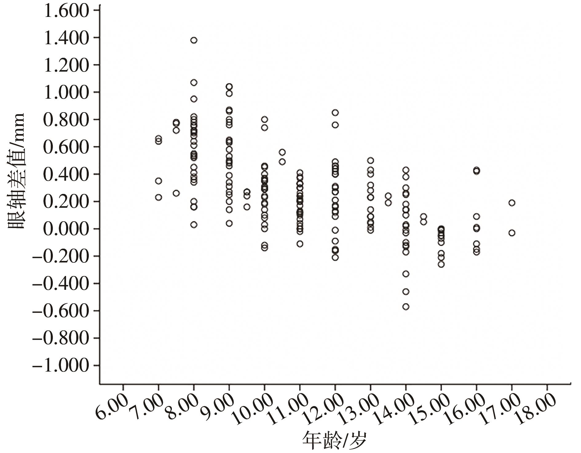 摘要:目的 分析青少年近视配戴角膜塑形镜后控制近视效果的影响因素,为临床验配工作提供依据。方法 回顾性研究2019年2月至8月在武汉大学附属爱尔眼科医院验配角膜塑形镜的青少年近视患者105例(206只眼),分析患者配戴角膜塑形镜前与18个月后眼轴变化量与年龄、性别、屈光度、眼轴、角膜散光、平k、陡k、e值、瞳孔直径、可见虹膜直径、镜片定位等参数的相关性。应用SPSS 23.0进行广义线性模型拟合和单因素方差分析。结果 向后选择法多因素分析表明,眼轴变化量跟年龄、原始屈光度相关(P<0.001、P<0.001),患者基线年龄越大,眼轴增长越缓慢。将基线屈光度进行分组单因素方差分析,发现-3.00 D以上的近视控制效果优于-3.00 D以下(P<0.01),2组组间控制效果无明显差异。结论 年龄和基线屈光度是配戴角膜塑形镜控制近视的影响因素。年龄大的患者比年龄小的眼轴增长缓慢,针对年龄小的患者角膜塑形镜各弧区应个性化设计;基线屈光度-3.00 D以上的近视控制效果优于-3.00 D以下,而3.00 D以上和3.00 D以下的近视控制效果却不受屈光度增减的影响,对屈光度-3.00 D以下患者密切随访,联合其余近视控制手段综合治疗。