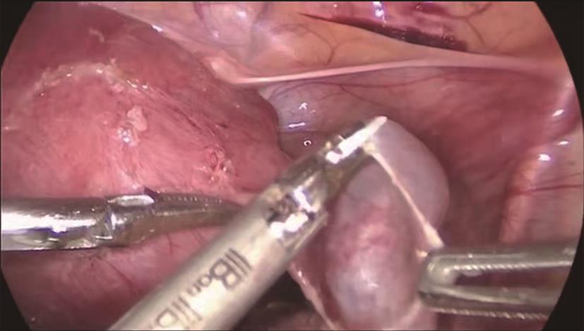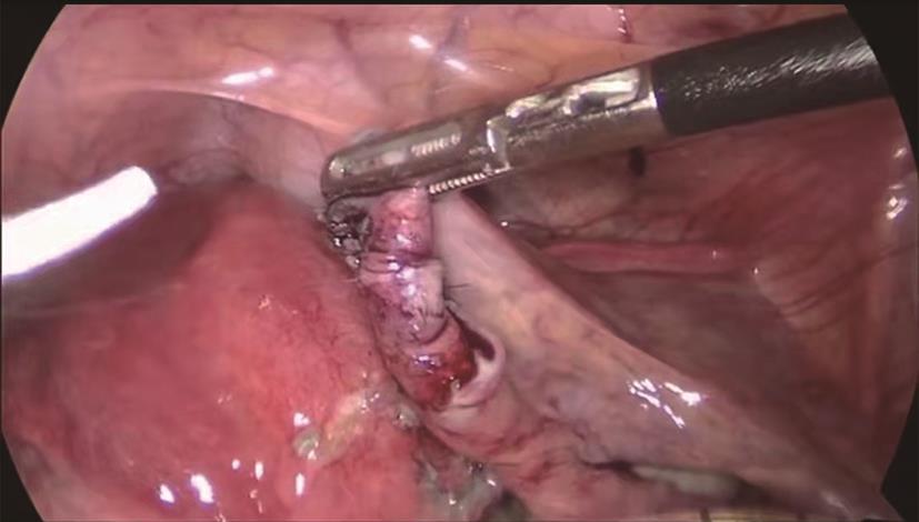 摘要:目的 探讨腹腔镜下输卵管部分切除+端端吻合术与输卵管切开取胚缝合术对输卵管妊娠患者输卵管复通和生育预后的疗效。方法 前瞻性纳入2018年4月至2021年4月具有生育期望且存在生育能力下降风险的输卵管妊娠拟行手术患者98例,随机分为切除吻合组(n=50)和切开缝合组(n=48)。切除吻合组行腹腔镜下输卵管妊娠部切除+端端吻合术,术中输卵管逆行插管(自输卵管伞端插入硬膜外麻醉导管并贯穿输卵管2个断端),作为支撑物辅助吻合并行术中通液。切开缝合组行腹腔镜下输卵管切开取胚缝合术,术中常规向输卵管妊娠囊附近系膜处注射甲氨蝶呤50 mg。2组常规术后避孕3个月,常规术后3个月行输卵管碘油造影术观察术侧输卵管通畅情况。对比2组手术时间、术中出血量、术后持续性异位妊娠发生率、术后3个月术侧输卵管通畅率。术后长期随访,观察2组宫内妊娠和再次输卵管妊娠发生情况。结果 切除吻合组手术时间[(52.3±5.7) min vs. (48.6±5.5) min,P=0.002]明显长于切开缝合组,术中出血量[(6.1±3.9) mL vs. (9.6±5.7) mL,P=0.000]明显少于切开缝合组,术后持续性异位妊娠发生率(0.0% vs. 14.6%,P=0.016)明显低于切开缝合组,差异均具有统计学意义(P<0.05)。术后3个月,切除吻合组术侧输卵管复通率(94.0% vs. 79.2%,P=0.030)明显高于切开缝合组。所有患者均获随访,随访(18.5±5.7)个月,切除吻合组术后宫内妊娠率(58.0% vs. 37.5%,P=0.042)明显高于切开缝合组,再次输卵管妊娠发生率(2.0% vs. 16.7%,P=0.031)明显低于切开缝合组。2组术后宫内妊娠不良结局的发生率差异无统计学意义。结论 腹腔镜下输卵管妊娠部切除+端端吻合术治疗输卵管妊娠的效果安全可靠,能够降低术后持续性异位妊娠和再次输卵管妊娠风险,提高术后输卵管复通率和宫内妊娠率。