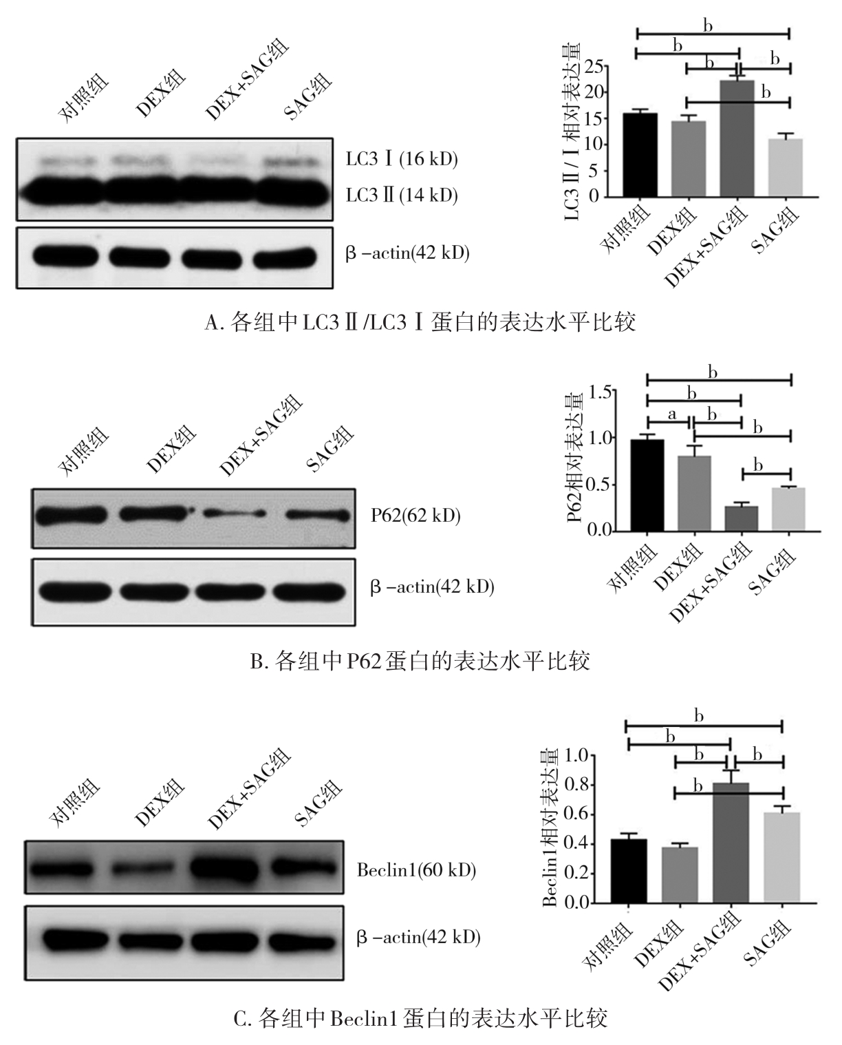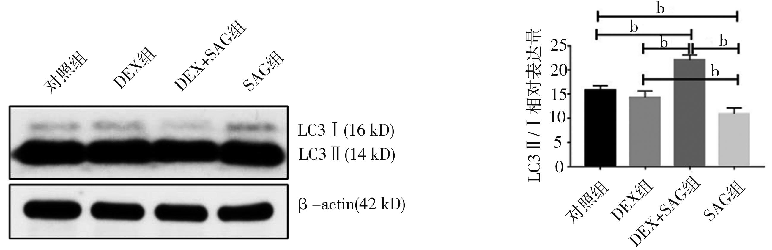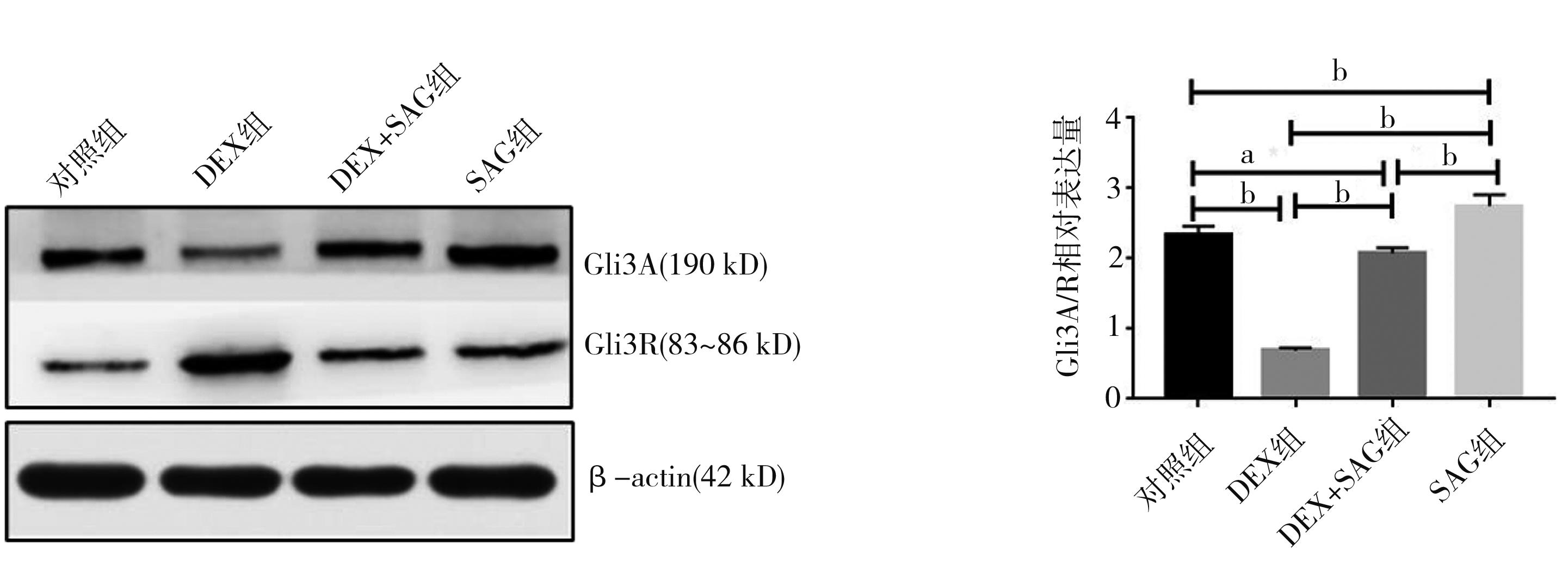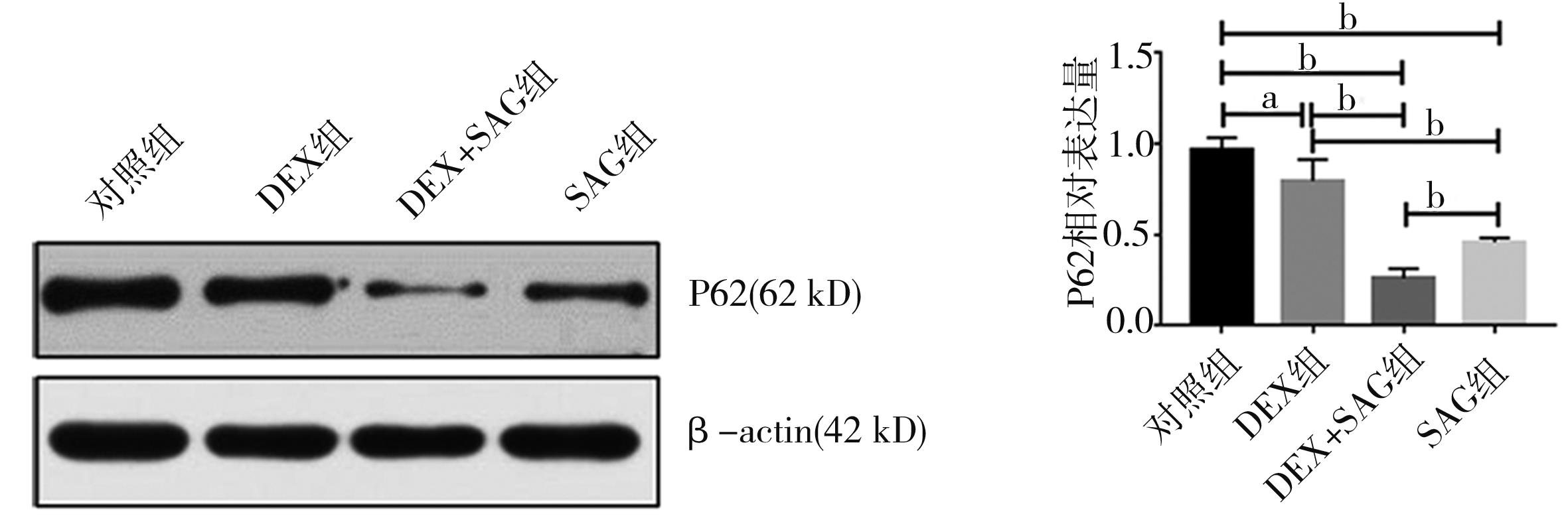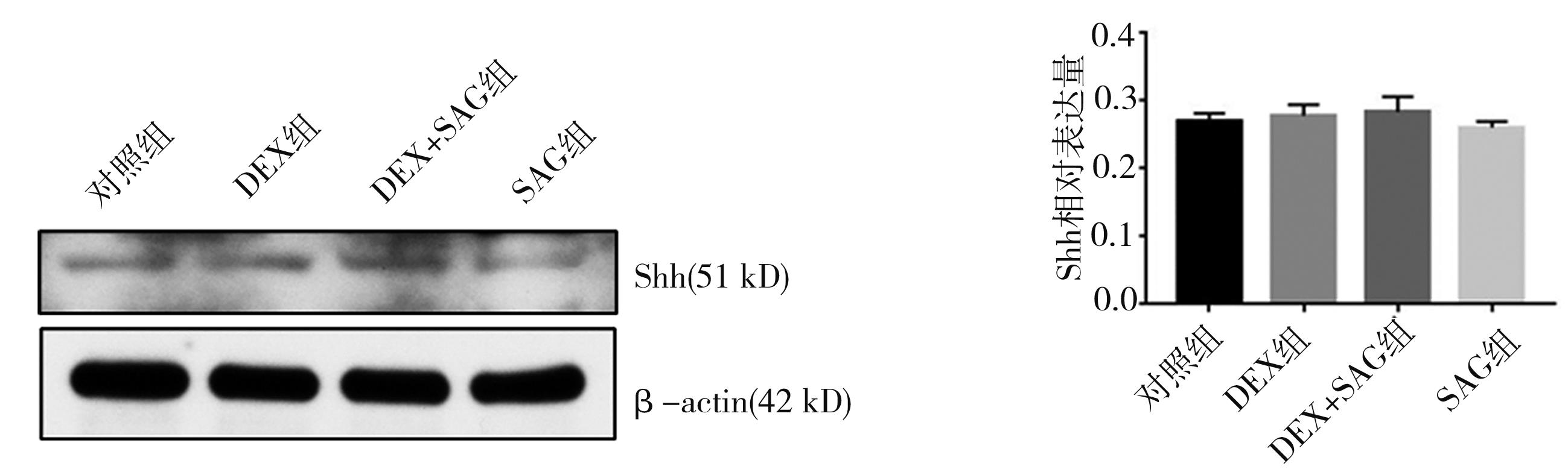 摘要:目的 探讨地塞米松(dexamethasone,DEX)及平滑激动剂(smoothened agonist,SAG)干预下小鼠胚胎腭突间充质细胞Shh信号通路改变后,小鼠胚胎腭突间充质细胞自噬状态的变化。方法 体外培养胚胎14.5 d的C57BL/6J小鼠胚胎腭突间充质细胞,根据干预方式分为4组:对照组、地塞米松组(DEX组)、地塞米松+SAG组(DEX+SAG组)、单独SAG干预组(SAG组)。通过透射电镜观察各组细胞自噬体或自噬溶酶体的数量,Western blot检测各组Shh、Ptch1、Smo、Gli3A/R、Cyclin D1及自噬标志物LC3Ⅱ/Ⅰ和P62、Beclin-1的表达情况。结果 电镜结果显示,对照组和DEX 组中自噬体/自噬溶酶体的数量无明显差异,而SAG干预后可观察到大量自噬体/自噬溶酶体。Western blot结果显示,与对照组相比,P62、Ptch1、Smo、Gli3A/R、CyclinD1在DEX组中明显降低(P<0.05),LC3Ⅱ/Ⅰ、Beclin1表达无明显变化(P>0.05);DEX+SAG组及SAG组中Ptch1、Smo、Gli3A/R、CyclinD1的表达与DEX组相比明显升高(P<0.05),Shh表达无明显差异(P>0.05),Beclin1表达明显升高(P<0.05),P62表达明显降低(P<0.05);与SAG组相比,DEX+SAG组中Smo、Gli3A/R、Ptch1、CyclinD1表达明显降低(P<0.05),Shh表达无明显差异(P>0.05),LC3Ⅱ/Ⅰ、Beclin1明显升高(P<0.05),P62表达明显降低(P<0.05)。结论 DEX可抑制小鼠胚胎腭突间充质细胞的Shh信号通路,激活Shh信号通路,诱发小鼠胚胎腭突间充质细胞产生自噬且Shh通路抑制后再激活,细胞自噬更加明显。