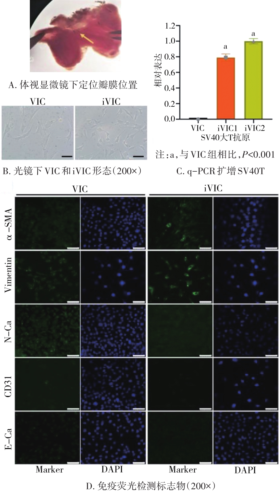 摘要:目的 建立具有快速增殖能力的可逆永生化主动脉瓣膜间质细胞系。方法 体视显微镜下利用弹簧剪夹取瓣膜组织,胶原酶消化后加入逆转录永生化病毒,利用免疫荧光鉴定细胞是否属于间质细胞,显微镜观察细胞形态,结晶紫、CCK-8和流式细胞周期技术检测细胞增殖能力,碱性磷酸酶染色和茜素红钙盐沉积实验检测细胞成骨能力,q-PCR及Western blot检测细胞成骨标志物。结果 经光镜观察和免疫荧光鉴定,成功取到瓣膜间质细胞。加入永生化病毒后,经光镜观察和免疫荧光确认瓣膜间质细胞未发生表型改变,且在永生化的细胞中能够检测到大量SV40T(P<0.001)。结晶紫染色、CCK-8(P<0.001)和流式细胞周期结果提示永生化后的瓣膜间质细胞增殖速度变快。加入成骨诱导因子骨形态发生蛋白-9(bone morphogenetic protein 9,BMP9)后永生化瓣膜间质细胞表现出较好的成骨能力,多数成骨标志物在分子层面的RNA和蛋白水平明显升高。去永生化后瓣膜间质细胞形态无明显改变,q-PCR结果显示SV40T明显降低(P<0.001),细胞增殖能力明显下降,且细胞周期被阻滞在G0/G1期。在BMP9诱导下去永生化瓣膜间质细胞同样具有成骨分化能力,且绝大多数成骨标志物都明显上升。结论 本研究成功建立可逆永生化瓣膜间质细胞系,BMP9可诱导其成骨分化,用于后续钙化性主动脉瓣膜疾病研究。