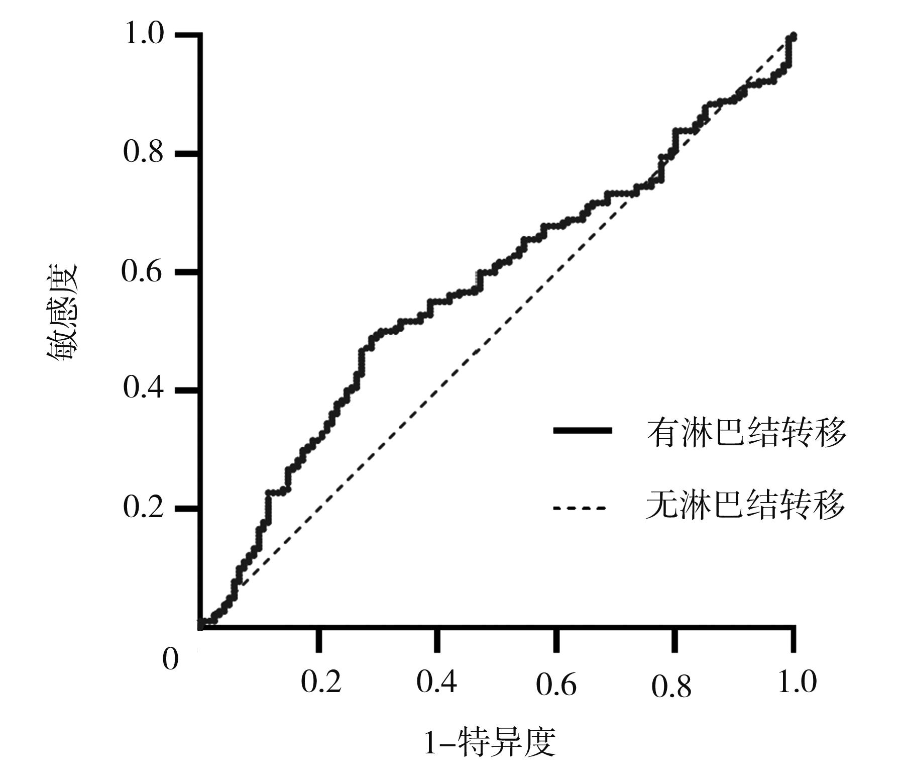 摘要:目的 探讨术前细针穿刺基因检测BRAFV600E突变丰度与甲状腺乳头状癌(papillary thyroid cancer,PTC)临床病理特征的关系。方法 回顾性统计2021年1月30日至2022年2月28日就诊于南京中医药大学附属中西医结合医院的301例患者临床资料,术前细针穿刺基因检测示BRAFV600E突变(含突变丰度检测),所有患者完成甲状腺癌根治术,术后病理证实为甲状腺乳头状癌,分析BRAFV600E基因突变丰度与临床病理特征的关系。结果 纳入301例患者,男91例,女210例,年龄42(33~51)岁,范围18~69岁。肿瘤直径>1 cm的患者BRAFV600E基因突变丰度高于肿瘤直径≤1 cm者[29.05(18.03~37.56) vs. 18.35(6.74~29.61),P<0.001],颈部淋巴结转移患者BRAFV600E基因突变丰度高于无颈部淋巴结转移者[24.72(8.08~34.32) vs. 18(8.68~28.54),P=0.040]。男女分开统计,女性颈部淋巴结转移患者BRAFV600E基因突变丰度高于无颈部淋巴结转移者[25.75(9.62~34.30) vs. 17.47(7.27~26.86),P=0.007],男性患者BRAFV600E基因突变丰度与颈部淋巴结转移无明显相关性(P=0.654)。通过受试者工作特征(receiver operating characteristic,ROC)曲线分析BRAFV600E突变丰度诊断女性PTC患者颈部淋巴结转移的效能,曲线下面积(area under the curve,AUC)为0.609(95%CI=0.532~0.686),取截断值25.68%。多因素分析显示,年龄<55岁(OR=0.138~0.735,P=0.007)、BRAFV600E突变丰度≥25.68%(OR=1.271~4.65,P=0.007)、多灶(OR=1.282~4.623,P=0.007)、肿瘤直径>1 cm(OR=2.257~11.927,P<0.001)与女性PTC患者颈部淋巴结转移有明显相关性(P<0.05)。结论 BRAFV600E突变丰度与PTC患者肿瘤直径、颈部淋巴结转移明显相关。BRAFV600E突变丰度≥25.68%的女性PTC患者颈部淋巴结转移率明显升高。