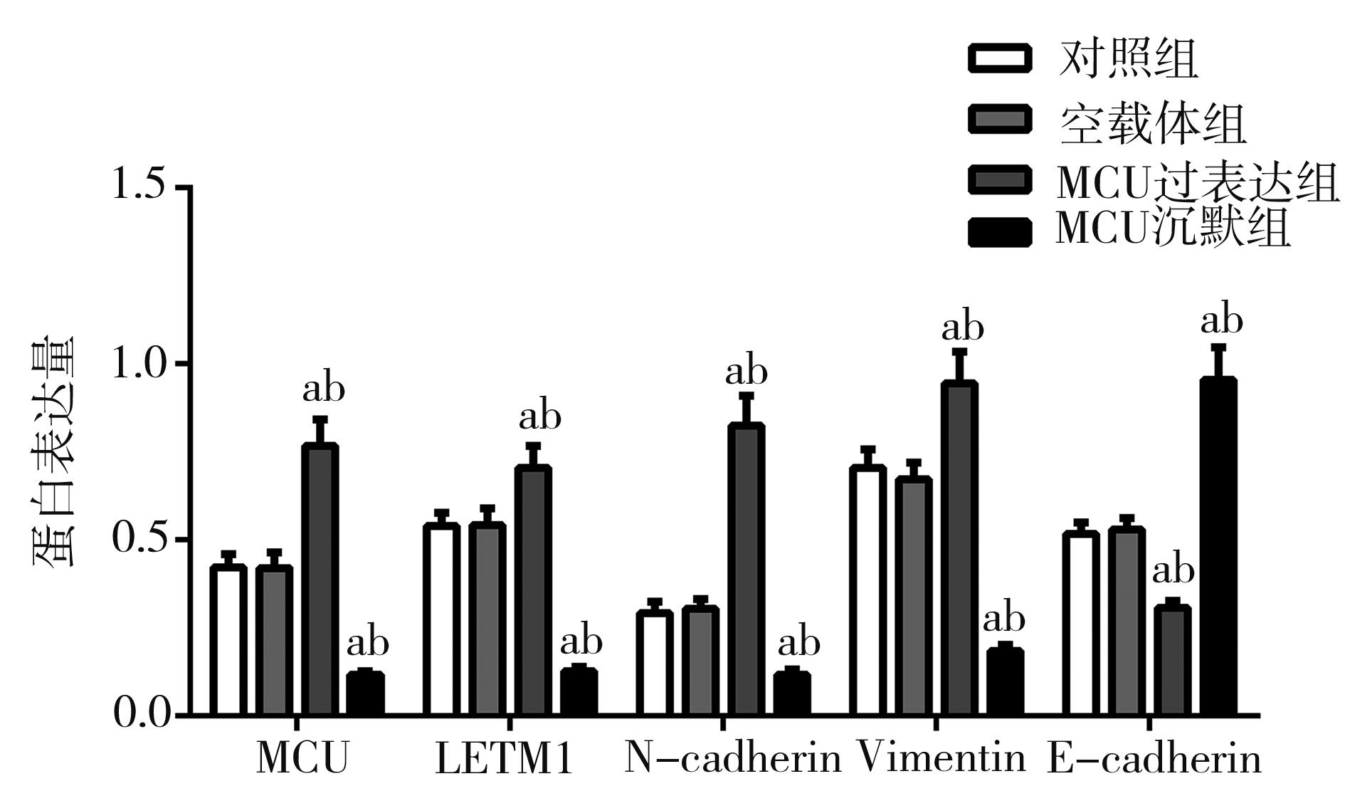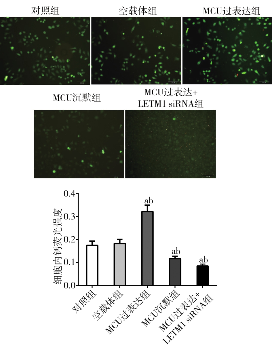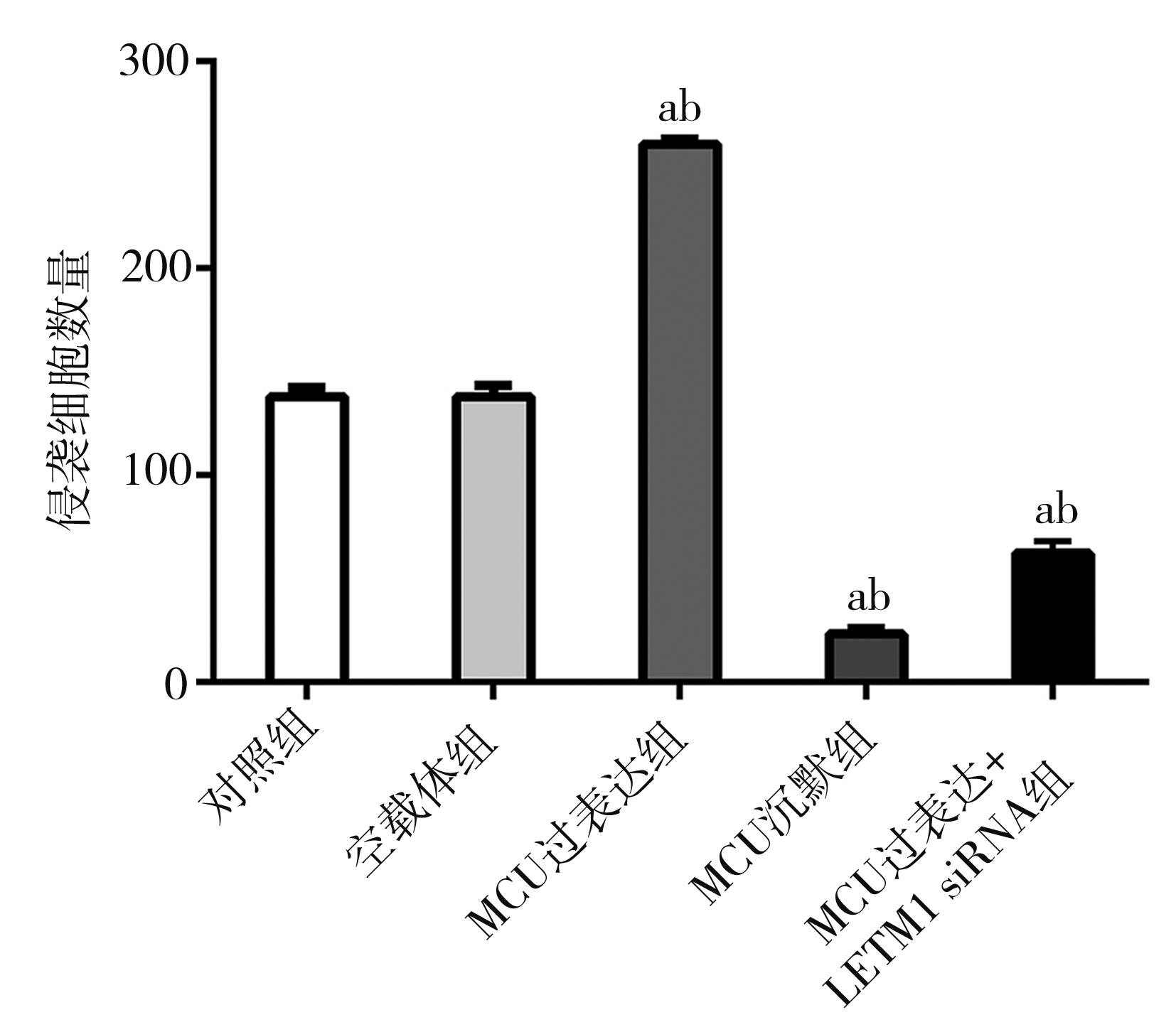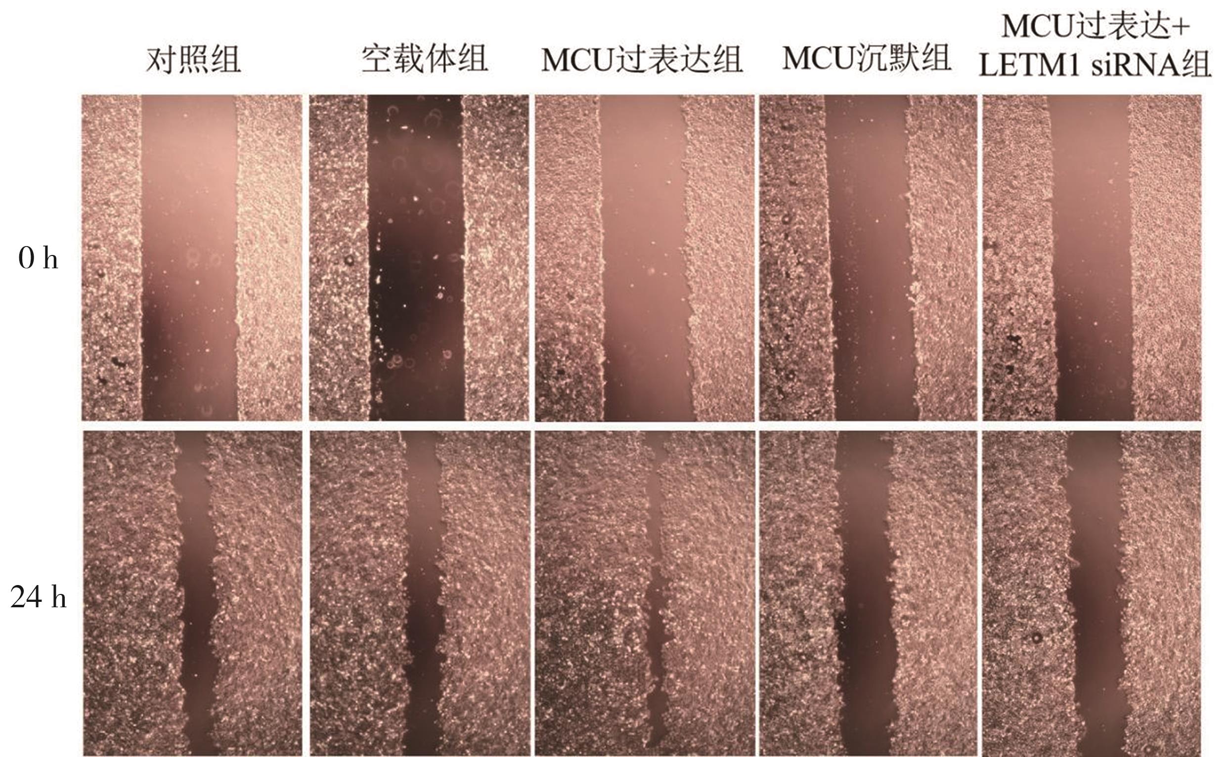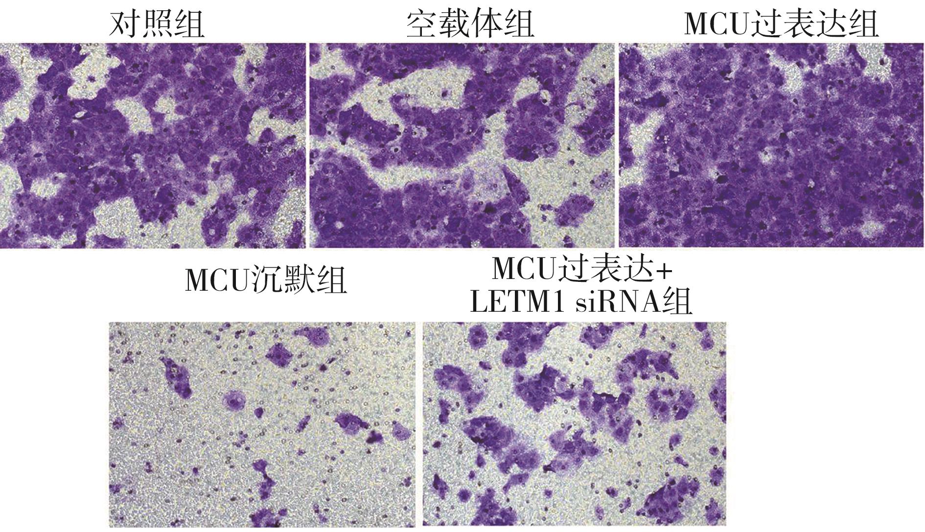 摘要:目的 探讨线粒体钙离子单向转运蛋白(mitochondrial calcium uniporter,MCU)与亮氨酸拉链/EF跨膜蛋白-1(leucine zipper/EF hand-containing transmembrane-1,LETM1)在调控线粒体钙稳态机制中的作用以及对口腔鳞状细胞癌细胞转移的影响。方法 选用口腔鳞状细胞癌CAL-27细胞株作为研究对象,构建MCU慢病毒干扰载体和过表达质粒,合成LETM1 siRNA干扰序列。采用细胞划痕实验、Transwell细胞侵袭实验检测MCU表达水平对CAL-27细胞侵袭、迁移的影响;细胞内钙离子荧光探针(Fluo-4 AM)以及JC-1线粒体膜电位测定实验检测MCU表达水平对CAL-27细胞内钙离子浓度及线粒体膜电位的影响;免疫荧光和Western blot检测CAL-27细胞内MCU、LETM1以及上皮-间充质转化(epithelial-mesenchymal transition,EMT)相关蛋白表达水平。结果 MCU过表达促进CAL-27细胞迁移和侵袭,MCU沉默组及MCU过表达联合LETM1 siRNA组细胞迁移和侵袭能力均明显受到抑制(F=45.302、1 300.246;均P>0.05);MCU过表达组细胞内钙荧光强度和线粒体膜电位明显上调,MCU沉默组和MCU过表达联合LETM1 siRNA组细胞内钙荧光强度和线粒体膜电位水平均明显降低(F=75.585、141.767;均P<0.01);MCU过表达组MCU、LETM1、N-cadherin以及Vimentin蛋白表达水平明显升高,而E-cadherin蛋白表达水平明显降低;MCU沉默组MCU、LETM1、N-cadherin及Vimentin蛋白表达水平较其他处理组明显降低,而E-cadherin蛋白表达水平明显升高(均P<0.01)。结论 MCU可调控LETM1及EMT标志物的表达,干扰LETM1可阻断MCU上调线粒体钙离子浓度和线粒体膜电位水平,降低口腔鳞状细胞癌细胞侵袭和迁移能力。