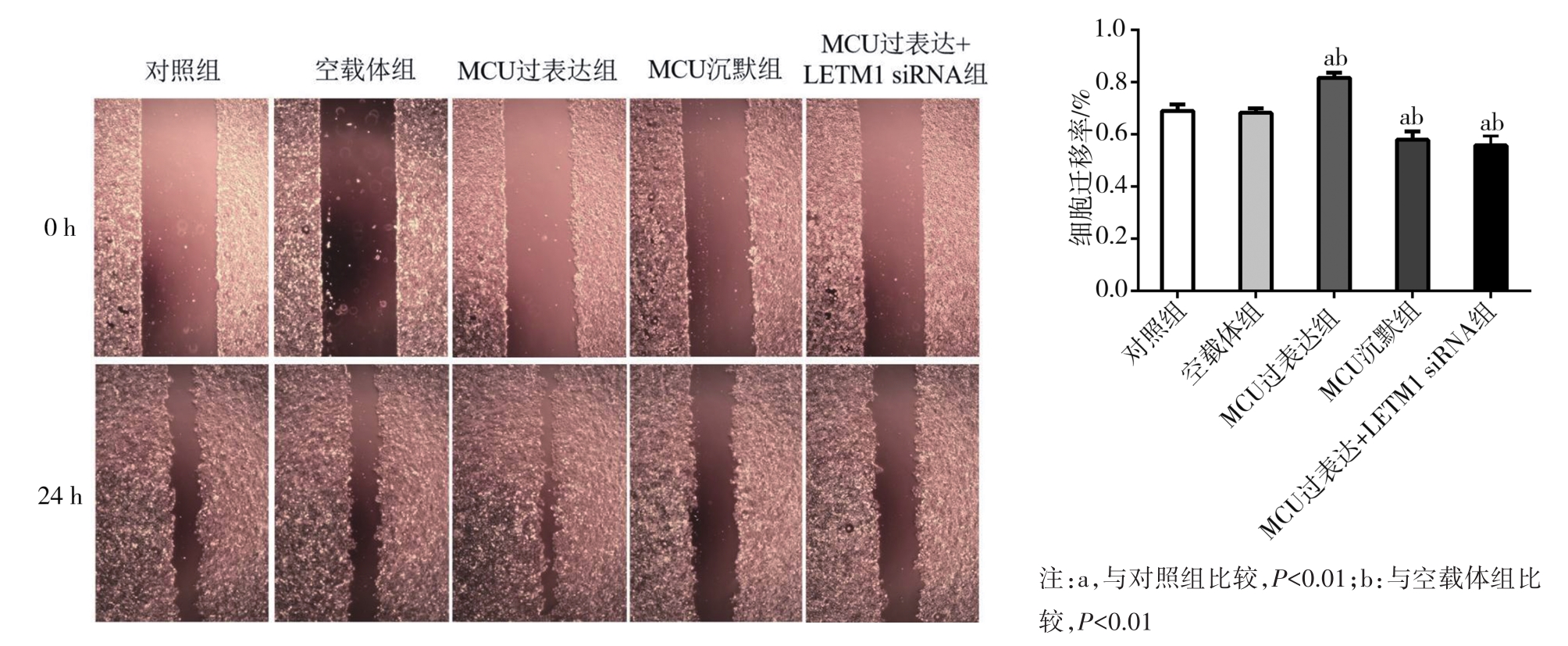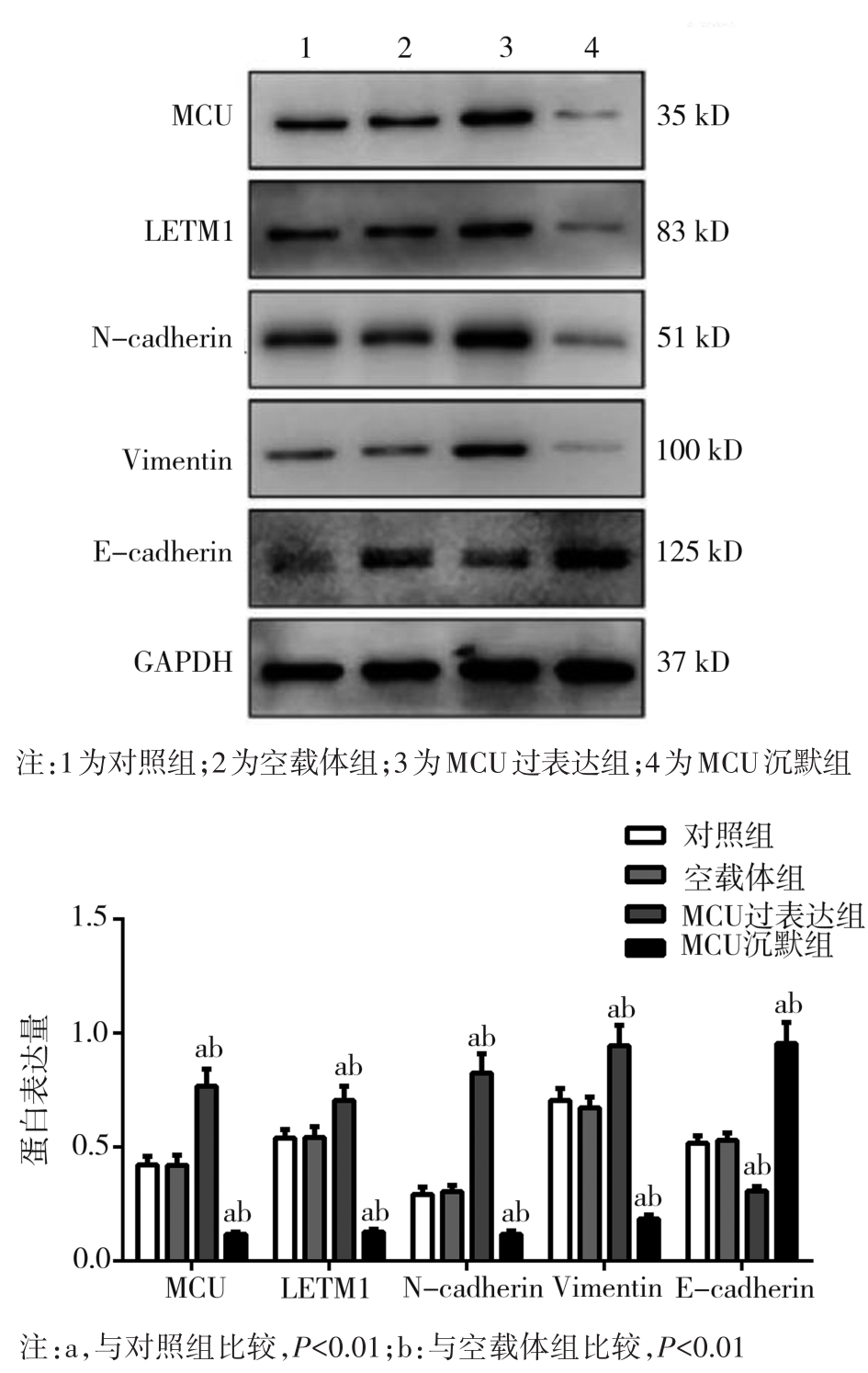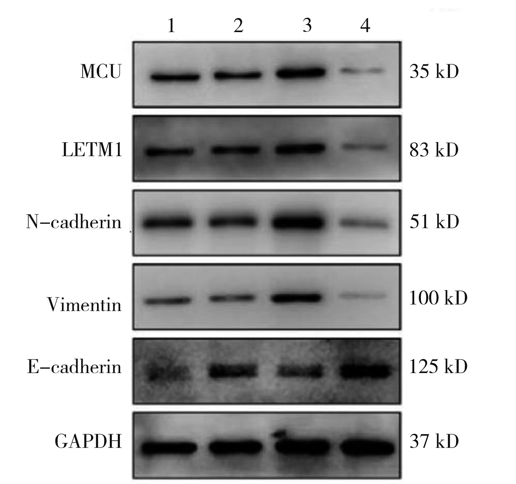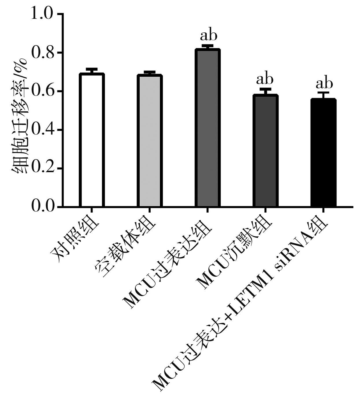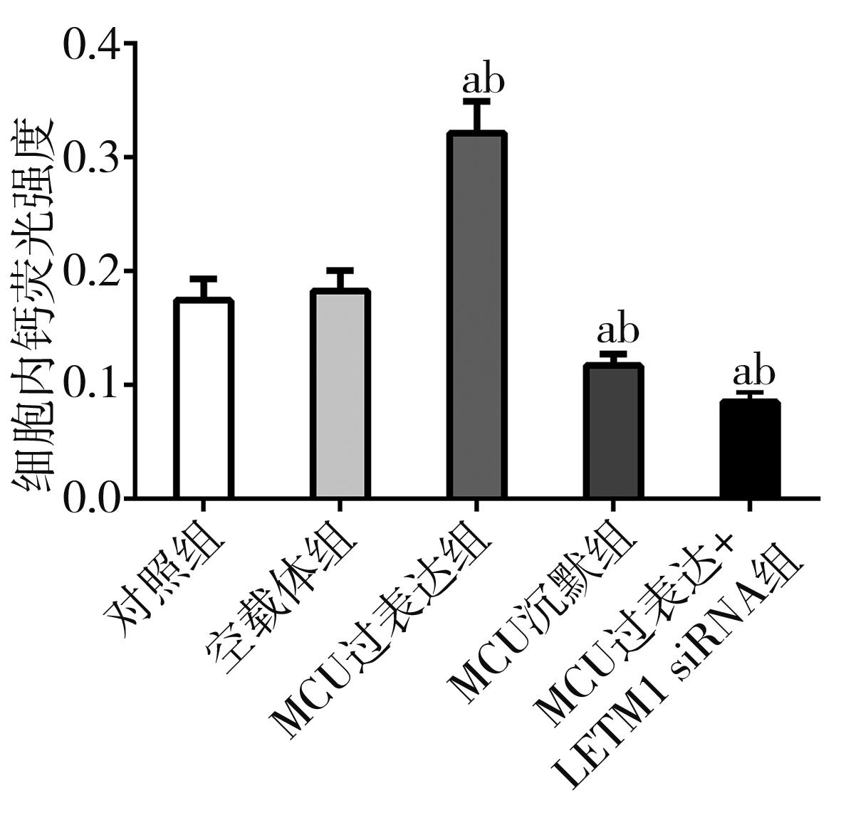 摘要:目的 探讨线粒体钙离子单向转运蛋白(mitochondrial calcium uniporter,MCU)与亮氨酸拉链/EF跨膜蛋白-1(leucine zipper/EF hand-containing transmembrane-1,LETM1)在调控线粒体钙稳态机制中的作用以及对口腔鳞状细胞癌细胞转移的影响。方法 选用口腔鳞状细胞癌CAL-27细胞株作为研究对象,构建MCU慢病毒干扰载体和过表达质粒,合成LETM1 siRNA干扰序列。采用细胞划痕实验、Transwell细胞侵袭实验检测MCU表达水平对CAL-27细胞侵袭、迁移的影响;细胞内钙离子荧光探针(Fluo-4 AM)以及JC-1线粒体膜电位测定实验检测MCU表达水平对CAL-27细胞内钙离子浓度及线粒体膜电位的影响;免疫荧光和Western blot检测CAL-27细胞内MCU、LETM1以及上皮-间充质转化(epithelial-mesenchymal transition,EMT)相关蛋白表达水平。结果 MCU过表达促进CAL-27细胞迁移和侵袭,MCU沉默组及MCU过表达联合LETM1 siRNA组细胞迁移和侵袭能力均明显受到抑制(F=45.302、1 300.246;均P>0.05);MCU过表达组细胞内钙荧光强度和线粒体膜电位明显上调,MCU沉默组和MCU过表达联合LETM1 siRNA组细胞内钙荧光强度和线粒体膜电位水平均明显降低(F=75.585、141.767;均P<0.01);MCU过表达组MCU、LETM1、N-cadherin以及Vimentin蛋白表达水平明显升高,而E-cadherin蛋白表达水平明显降低;MCU沉默组MCU、LETM1、N-cadherin及Vimentin蛋白表达水平较其他处理组明显降低,而E-cadherin蛋白表达水平明显升高(均P<0.01)。结论 MCU可调控LETM1及EMT标志物的表达,干扰LETM1可阻断MCU上调线粒体钙离子浓度和线粒体膜电位水平,降低口腔鳞状细胞癌细胞侵袭和迁移能力。