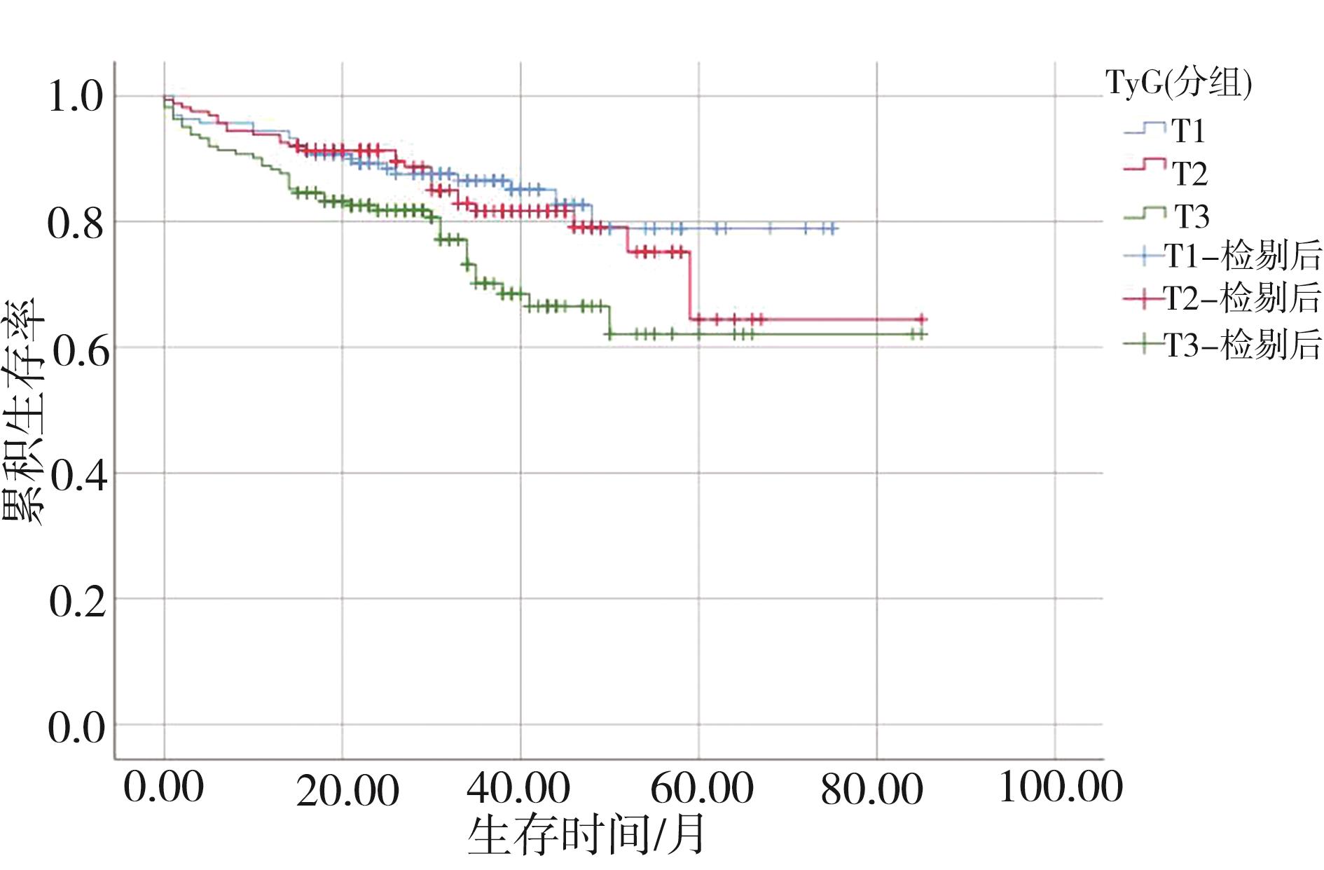 摘要:目的 评估甘油三酯-葡萄糖指数(triglyceride-glucose index,TyG指数)对接受经皮冠状动脉介入治疗的急性心肌梗死(acute myocardial infarction,AMI)患者长期主要不良心血管事件(major adverse cardiovascular events,MACE)的预测作用。方法 回顾性分析2012年12月至2018年10月连续收治于北京石景山医院诊断为AMI并行经皮冠状动脉介入治疗的患者。TyG指数计算公式为:ln[空腹甘油三酯(mg/dL)×空腹血糖(mg/dL)/2]。根据TyG指数三分位数将患者分为3组,记录其临床、实验室资料及MACE(包括全因死亡、非致死性心肌梗死或再次血运重建)。采用Cox风险回归分析进行单因素和多因素分析。结果 临床中位随访时间为31(21~41)个月,随访中死亡45例(9.3%),发生MACE事件91例(24.2%)。随着TyG指数的增高,MACE发生率明显增高(P=0.027)。发生MACE的患者年龄更大,有更高水平的TyG指数、空腹血糖、糖化血红蛋白(glycated hemoglobin,HbA1c)和尿酸,既往有糖尿病史、脑血管病史、Killip分级大于1和三支病变所占的比例更高。多因素Cox回归分析表明,校正其他因素后,TyG指数是长期(1年以上)死亡率的独立预测因子(HR=1.656,95%CI=1.226~2.237;P=0.001)。Kaplan-Meier分析显示,高TyG指数组患者发生MACE事件的生存率最低(P=0.011)。结论 TyG指数是接受经皮冠状动脉介入治疗的AMI患者长期MACE事件发生的独立预测因子。