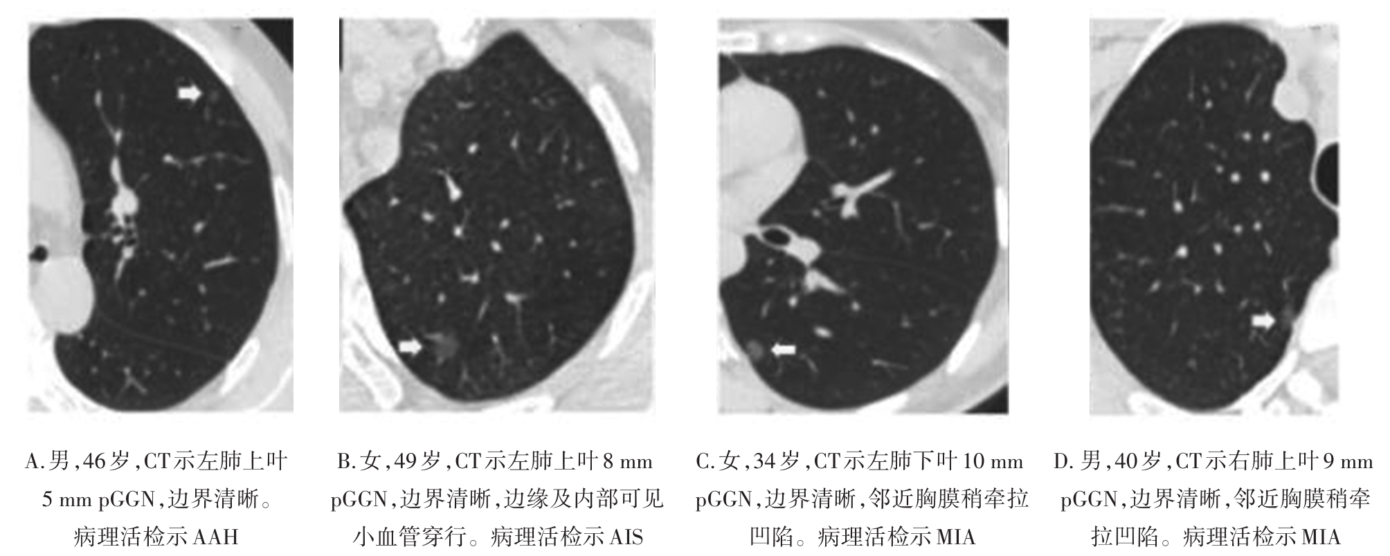 摘要:目的 探究纯磨玻璃结节(pure ground-glass nodule,pGGN)肺腺癌计算机断层扫描(computed tomography,CT)征象与其浸润程度的相关性,建立CT征象与浸润程度的预测模型。方法 回顾性分析424例经手术切除、病理活检证实且胸部CT表现为pGGN的肺腺癌患者临床资料及CT征象,根据病理活检结果分为非典型腺瘤样增生、原位腺癌、微浸润腺癌和浸润性腺癌4组,对组间差异采用卡方检验或Fisher确切概率法进行统计分析。对有统计学意义的结果,使用怀卡托智能分析环境(Waikato environment for knowledge analysis,WeKa)中的6种学习算法进行预测模型构建,并验证准确性,挑选出最适用于本研究的预测模型。结果 4组间在结节直径、结节密度值上的差异具有统计学意义(P<0.001),对应的直径平均值分别为6.90、8.65、10.71、14.56 mm,对应的密度平均值分别为-633.16、-543.04、-401.03、-322.94 HU,随着病灶的浸润程度加重,结节的直径及密度值呈现明显的上升趋势。4组间在结节边界、分叶、毛刺、血管穿行、胸膜凹陷、空气支气管征、空泡征等的差异具有统计学意义(P<0.05),而结节的生长位置,年龄、吸烟史、直系亲属肺癌家族史等差异无统计学意义(P>0.05)。随机森林算法所构建的模型预测准确率为76.42%~79.72%,Kappa系数为0.597~0.670,受试者工作特征(receiver operating characteristic,ROC)曲线下面积均大于0.9,在误差指标中表现最优,是最适合于本研究的预测模型。结论 pGGN的不同CT征象与其浸润程度密切相关,可以用于建立预测模型。基于随机森林算法所建模型,在有创干预前早期快速识别pGGN浸润程度的平均准确率为78.07%,准确度最高,对肺癌预测具有潜在应用价值。