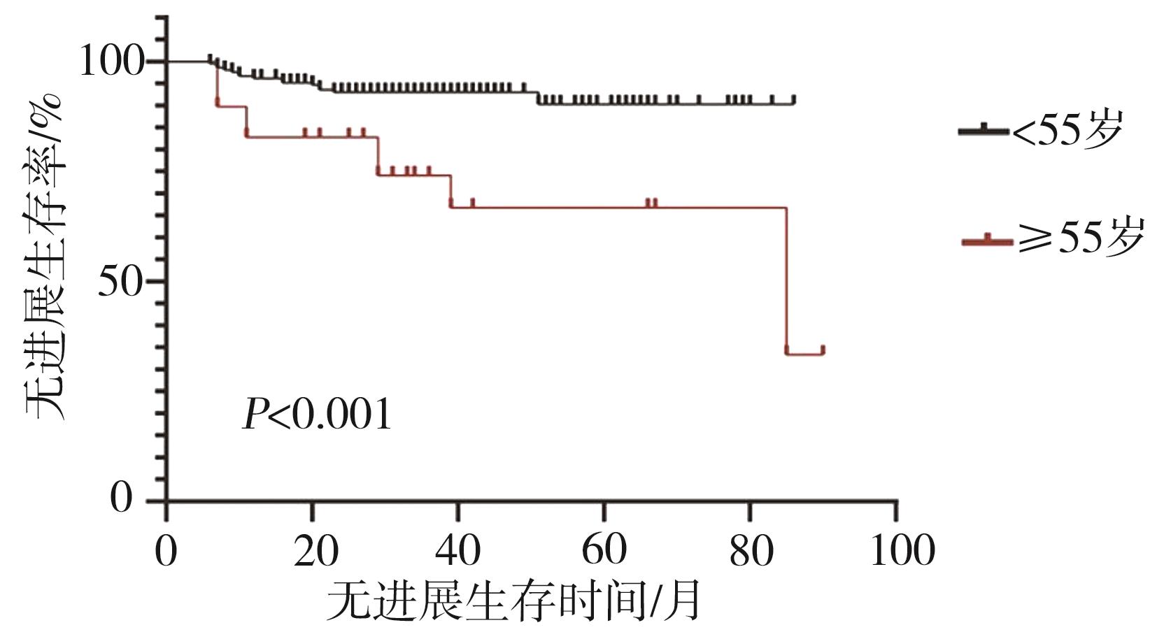 摘要:目的 探讨不同剂量131I对中低危分化型甲状腺癌(differentiated thyroid cancer,DTC)清除甲状腺组织(简称清甲)的疗效反应及无进展生存期(progression-free survival,PFS)有无差异。方法 回顾性分析201例131I清甲治疗的DTC患者,共236人次接受131I治疗。 根据治疗后6~12个月的血清学及影像学指标评估患者的疗效反应,根据131I治疗剂量分为1次1.1 GBq(G1组)、2次1.1 GBq(G2组)、3.0 GBq(G3组)和3.7 GBq(G4组)。对201例患者随访12~90个月,收集131I治疗后的血清学、影像学及治疗记录等资料,评估病情有无进展。卡方检验、Fisher确切概率法比较各治疗组的疗效差异及影响因素,Kaplan-Meier法及log-rank检验分析比较PFS,Cox比例风险模型评估PFS的独立预测因子。结果 ①4组的总疗效满意(excellent response,ER)、疗效不确切(indeterminate response,IDR)、血清学治疗反应不佳(biochemical incomplete response,BIR)和结构性治疗反应不佳(structural incomplete response,SIR)率分别为41.5%(98/236)、44.9%(106/236)、6.8%(16/236)及6.8%(16/236)。②4组的ER率分别为16.67%(10/60)、42.86%(15/35)、56.52%(13/23)及50.85%(60/118);IDR率分别为60.00%(36/60)、45.71%(16/35)、30.43%(7/23)及39.83%(47/118);BIR率分别为10.00%(6/60)、0.00%(0/35)、4.35%(1/23)及7.63%(9/118);SIR率分别为13.33%(8/60)、11.43%(4/35)、8.70%(2/23)及1.69%(2/118)。③G1组与G2~G4组的清甲疗效满意度(ER率)及G1组与G4组结构性疗效不佳(SIR率)差异有统计学意义(P=0.005、0.000、0.000、0.003)。④中位随访30个月,病情进展患者18例(8.96%)。不同剂量组的PFS差异无统计学差异(P=0.112)。年龄和疗效反应与PFS显著相关。结论 对于中低危DTC患者,2次1.1 GBq与3.0 GBq及3.7 GBq 131I的短期清甲效果无明显差异;不同剂量清甲治疗与PFS无明显相关,年龄<55岁和131I治疗反应为ER的患者PFS更优。