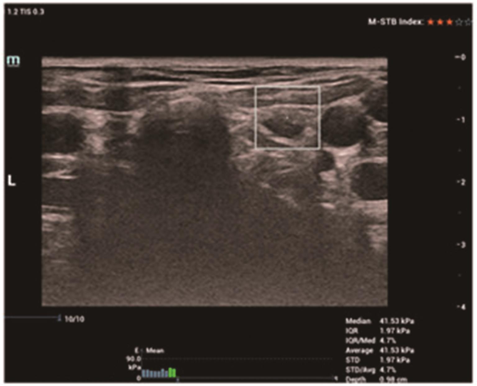 摘要:目的 探讨剪切波弹性成像(shear wave elastography,SWE)与细针穿刺洗脱液甲状腺球蛋白(fine-needle aspiration washout thyroglobulin,FNA-Tg)对甲状腺乳头状癌侧颈部淋巴结转移的诊断价值。方法 回顾性分析159例经病理证实为甲状腺乳头状癌(papillary thyroid carcinoma,PTC)的患者资料,对颈部211枚可疑淋巴结进行常规超声、SWE参数平均值(Emean)、FNA-Tg检查,以术后病理结果为金标准,比较各检测方法的诊断效能。结果 ①SWE Emean转移组[(50.96±27.66) kPa]高于非转移组[(32.20±17.34) kPa],差异有统计学意义(t=8.761,P<0.01)。受试者工作特征(receiver operating characteristic,ROC)曲线分析表明,SWE Emean最佳诊断阈值为40.42 kPa时对PTC颈部淋巴结转移预测价值较高,曲线下面积(area under the curve,AUC)为0.849(95%CI=0.795~0.902,P<0.01)。②与SWE Emean比较,联合法敏感度、特异度、准确度、阳性预测值及阴性预测值均显著提高(χ2=7.724、28.230、35.094、21.731、9.890,P=0.005、<0.000、<0.000、<0.000、0.002)。与FNA-Tg比较,联合法敏感度、特异度、准确度、阳性预测值及阴性预测值也显著提高(χ2=7.724、6.014、13.526、6.137、7.602,P=0.005、0.014、<0.000、0.013、0.006)。③在淋巴结有囊性变和无囊性变时,SWE Emean的准确度分别为53.8%和79.8%,差异有统计学意义(χ2=4.819,P=0.028);FNA-Tg的准确度分别为92.3%和87.4%,差异无统计学意义(χ2=0.275,P=0.600)。结论 FNA-Tg诊断PTC转移淋巴结的准确度较高,且不受淋巴结有无囊性变的影响,与SWE Emean联合后可显著提高诊断效能。