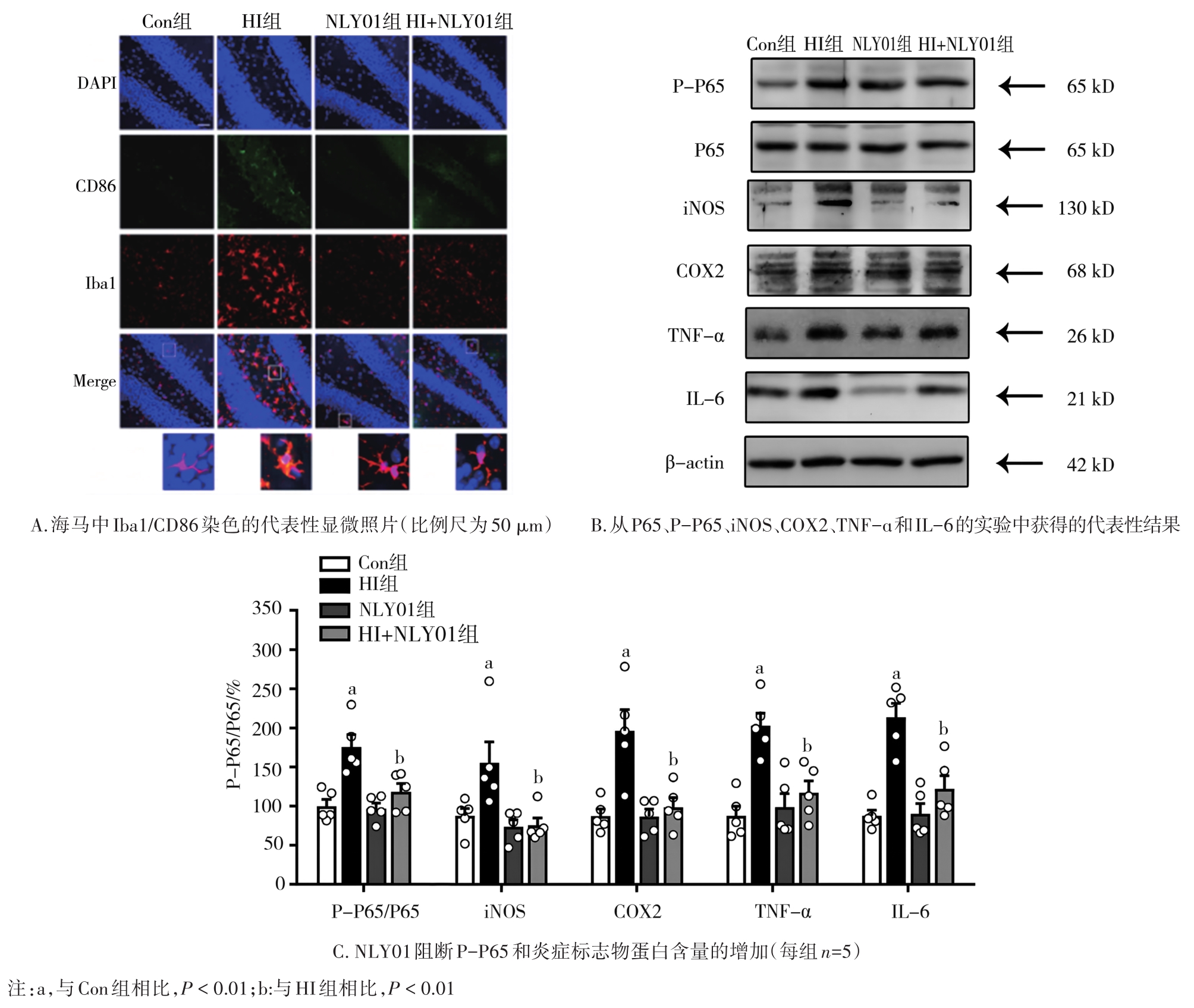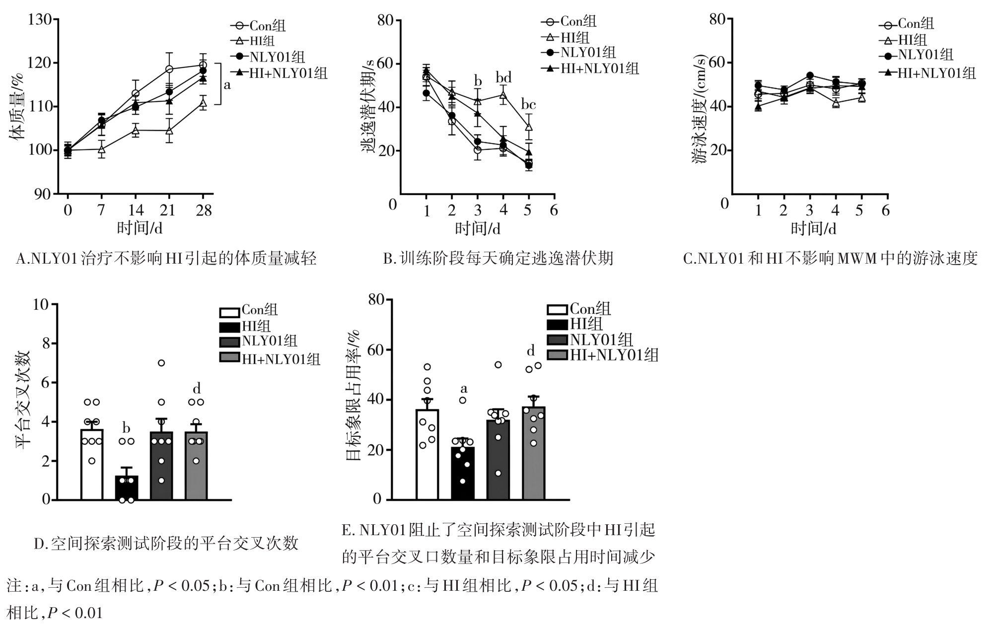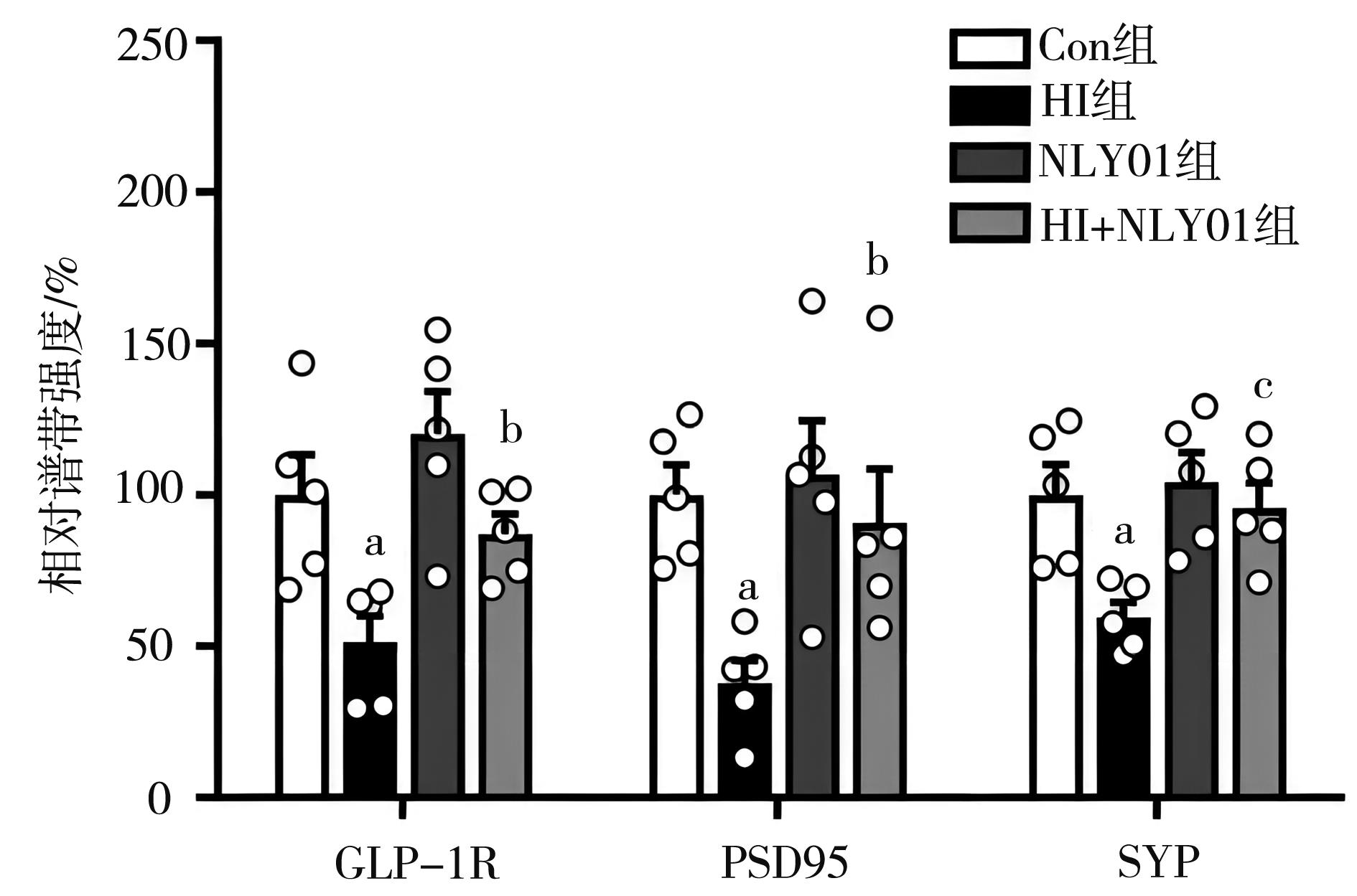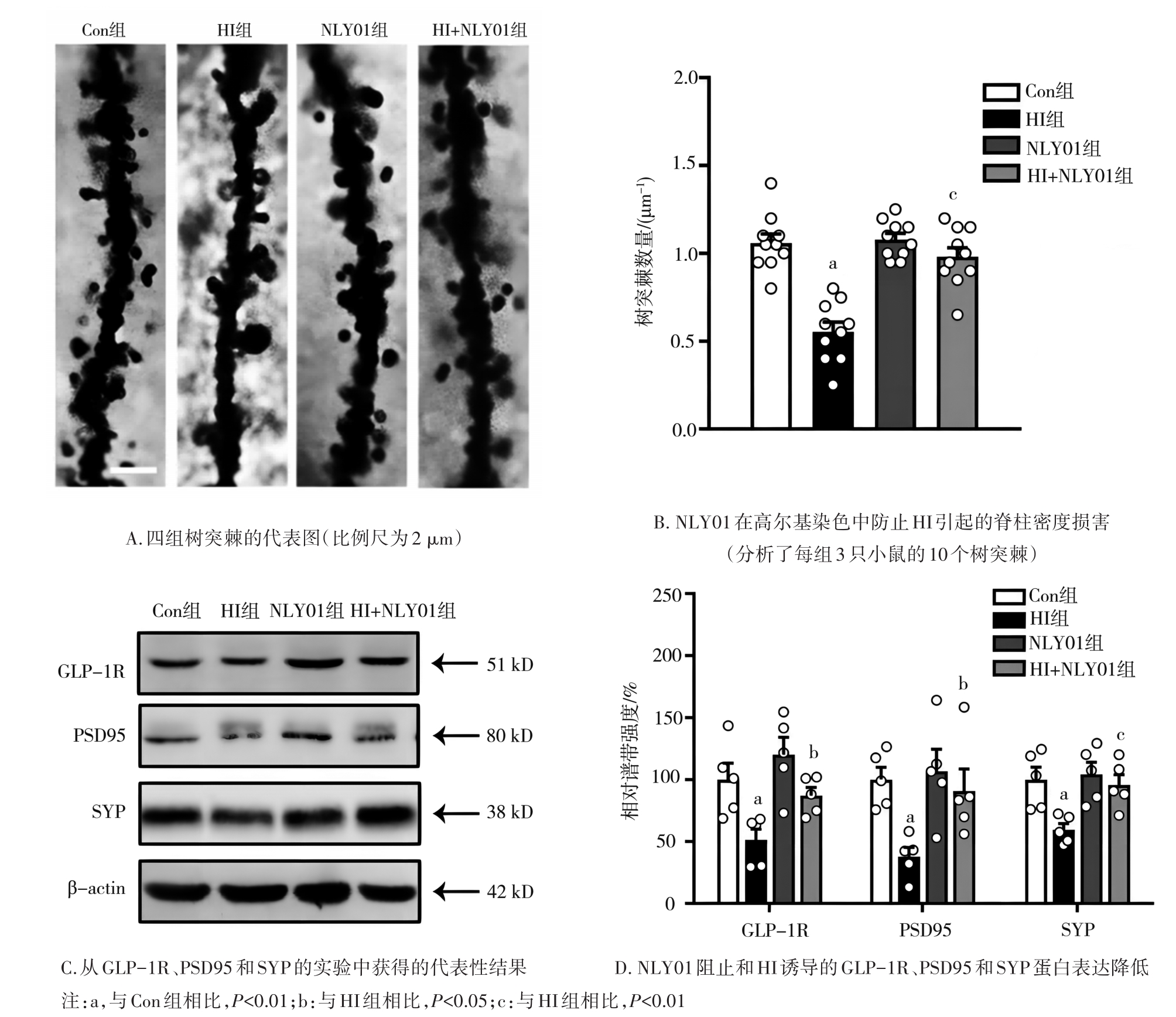 摘要:目的 探讨胰高血糖素样肽-1受体(glucagon-like peptide-1 receptor,GLP-1R)激动剂(agonist,NLY01)对新生儿缺氧缺血性脑损伤(hypoxia ischemia,HI)模型小鼠在突触可塑性方面的保护作用。方法 实验1,将P7小鼠分配到对照组(Con组)、HI组、NLY01组和HI+NLY01组,每组16只;实验2,将P7小鼠分配到HI组、HI+NLY01组、HI+Ex9-39组和HI+NLY01+Ex9-39组,每组8只。其中,Ex9-39用于阻断GLP-1R。进行行为测试以测量学习能力。高尔基染色用于测量齿状回突触的可塑性。通过蛋白质印迹和免疫荧光评估突触和神经炎症相关蛋白的表达。结果 NLY01对GLP-1R的激活防止了由HI引起的认知缺陷。NLY01阻止了HI诱导的GLP-1R水平降低。GLP-1R的激活显著改善了突触可塑性的损害,阻止了炎症因子的上调,并抑制了核因子-κB(nuclear factor-κB,NF-κB)磷酸化和小胶质细胞M1极化。在HI模型中,NLY01对HI诱导的新生小鼠急性脑损伤的保护作用被Ex9-39阻断。结论 GLP-1R可能是调节新生小鼠急性脑损伤炎症途径的功能靶点,支持GLP-1R激动剂在HI诱导新生小鼠脑损伤中的潜在治疗作用。