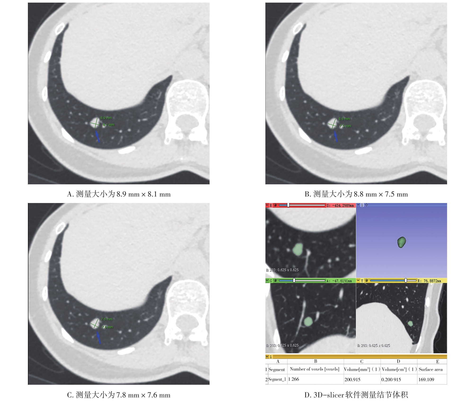 摘要:目的 研究3D-Slicer软件实性肺结节体积测量对不同观察者在肺部影像报告数据系统(lung CT screening reporting and data system,Lung-RADS)分类一致性中的影响。方法 纳入76例患者中的76个实性结节。由3位放射科医师分别采用手动和3D-Slicer软件半自动体积测量方法获得结节的直径与体积,并转化为相应的Lung-RADS评分,其中2分为阴性,3分及以上为阳性。采用同类相关系数(intraclass correlation coefficient,ICC)及Bland-Altman指数来评价观察者间直径与体积测量的一致性,Kappa分析评价观察者间Lung-RADS评分及阳性/阴性组间的一致性。结果 ICC分析结果显示手动直径测量的一致性(0.994~0.996)明显低于半自动体积测量的一致性(0.997~0.998),同时Bland-Altman指数分析结果显示手动直径测量的偏倚高于半自动体积测量。采用半自动体积测量,能够比手动直径测量明显提高观察者间Lung-RADS评分及阳性/阴性之间的一致性(0.963~0.975及0.957~0.977 vs. 0.833~0.866及0.863~0.892)。结论 3D-Slicer半自动体积测量能够提高实性肺结节观察者间大小测量的一致性,相应的Lung-RADS分类一致性也随之提高。