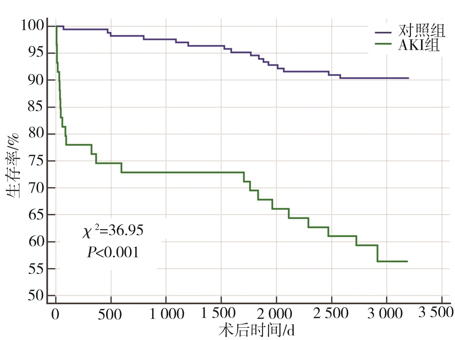 摘要:目的 探讨≥65岁老年患者行心脏瓣膜外科手术后发生急性肾损伤(acute kidney injury,AKI)的危险因素及其对预后的影响。方法 回顾性分析2013年1月至2014年5月在广东省人民医院行心脏瓣膜外科手术的≥65岁老年患者,剔除术前接受肾替代治疗、血肌酐值缺失的病例,记录入选病例的术前、术中及术后临床资料,定期进行电话随访,主要终点为AKI发生率,次要终点为随访死亡率。根据术后是否并发KDIGO标准的AKI分期≥2,分为AKI组和对照组。采用单因素分析和logistic回归多因素分析探索术后AKI的危险因素,采用Kaplan-Meier生存分析显示AKI对随访死亡的影响,采用多因素Cox回归模型分析术后患者随访死亡的危险因素。结果 本研究共纳入225例患者,其中女性110例(58.89%)。AKI(AKI 2~3期)发病率为26.22%(n=59)。AKI组住院死亡率显著高于对照组(13.6% vs. 0.0%,P<0.001);最长随访时间9年,AKI组随访死亡率显著高于对照组(42.4% vs. 9.6%,P<0.001)。Kaplan-Meier生存分析显示AKI组的随访死亡率显著高于对照组(P<0.001)。单因素及logistic回归多因素分析结果显示,术后AKI的独立危险因素是术前血小板计数较低(OR=0.99,P=0.011)及围术期红细胞输注量较大(OR=1.11,P<0.001)。单因素及多因素Cox回归模型分析结果显示,发生随访死亡的危险因素是术前白蛋白水平低下(HR=0.90,P=0.028)、使用主动脉内球囊反搏(HR=7.38,P=0.003)及并发术后AKI(HR=2.88,P=0.006)。结论 术前血小板计数较低及围术期红细胞输注量较大可增加≥65岁老年患者行心脏瓣膜手术后并发AKI的风险,而术后并发AKI可增加住院死亡率和随访死亡率。