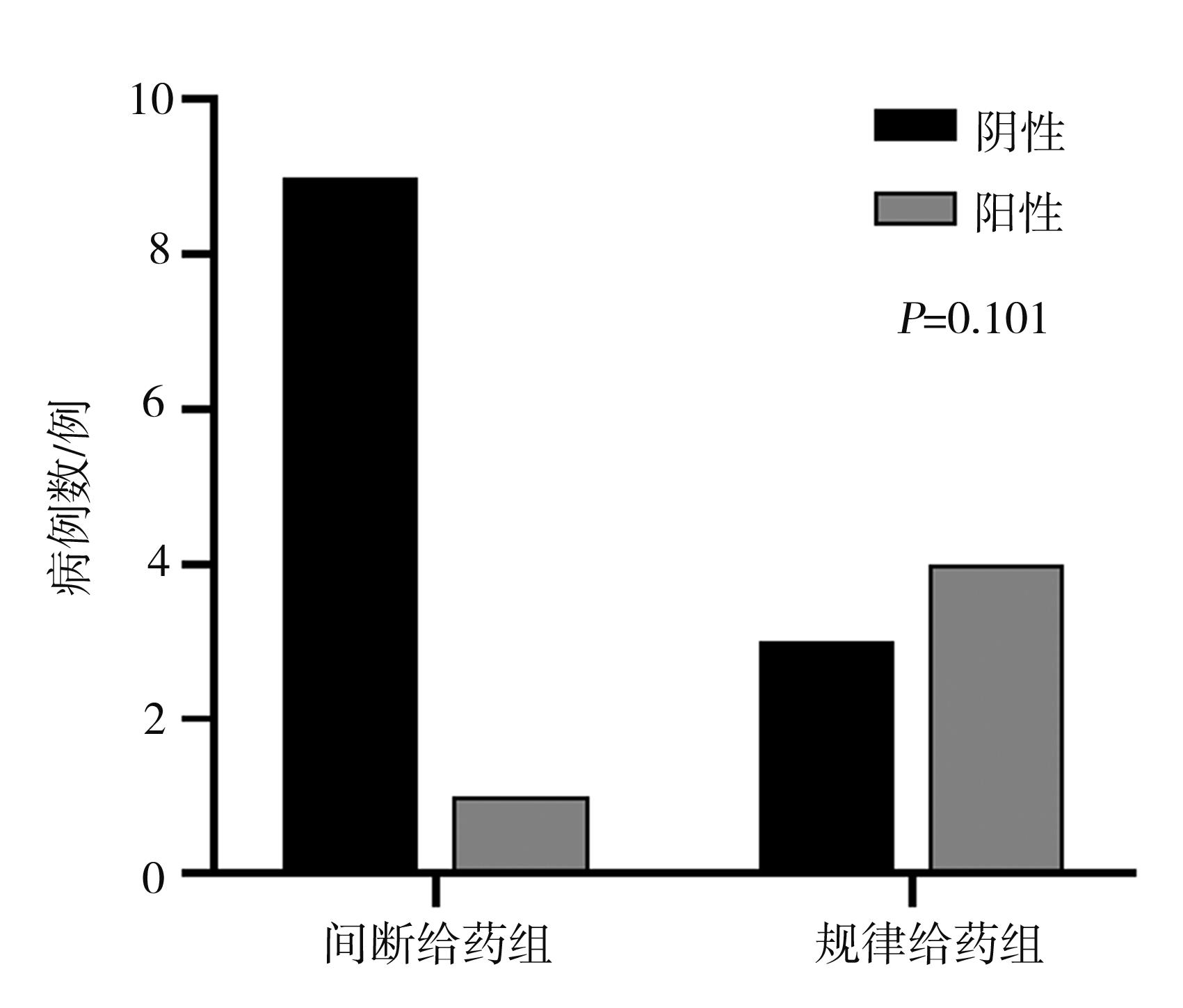 摘要:目的 探究临床中间断性使用利福昔明预防肝性脑病(hepatic encephalopathy, HE)复发的效果是否不劣于规律给药,利福昔明治疗后是否可降低患者因HE及全因住院的次数。方法 该研究为单中心前瞻性病例对照研究,将纳入的HE患者根据给药方案不同分为2组:间断给药组(利福昔明 400 mg tid,每周连续给药2 d)30例,其中最短给药时间4周,18例疗程3个月;规律给药组(利福昔明 400 mg tid,每天服用)25例,其中24例疗程3个月。比较2组患者在不同给药时间及给药前后因HE及全因住院的差异。结果 间断给药组与规律给药组相比,服药4周因HE及全因住院的概率差异均无统计学意义(P>0.05),服药3个月因HE及全因住院的次数差异均无统计学意义(P>0.05)。利福昔明给药后3个月与给药前3个月相比,因HE住院的平均住院次数减少[(0.52±0.86)次vs.(1.12±1.04)次,P=0.000]、全因住院的平均住院次数减少[(0.90±0.98)次vs.(1.60±1.08)次,P=0.000]。亚组分析发现,间断给药组及规律给药组在给药后3个月与给药前3个月相比较,因HE及全因住院的次数均减少,差异有统计学意义(P<0.05)。规律给药组患者大便含真菌的比例更高(4/7 vs. 1/10),但差异无统计学意义(P=0.101)。结论 间断使用利福昔明预防HE不劣于规律给药。间断或规律使用利福昔明,给药后均可减少患者因HE及全因住院的次数。临床中长期用药需警惕真菌感染风险。