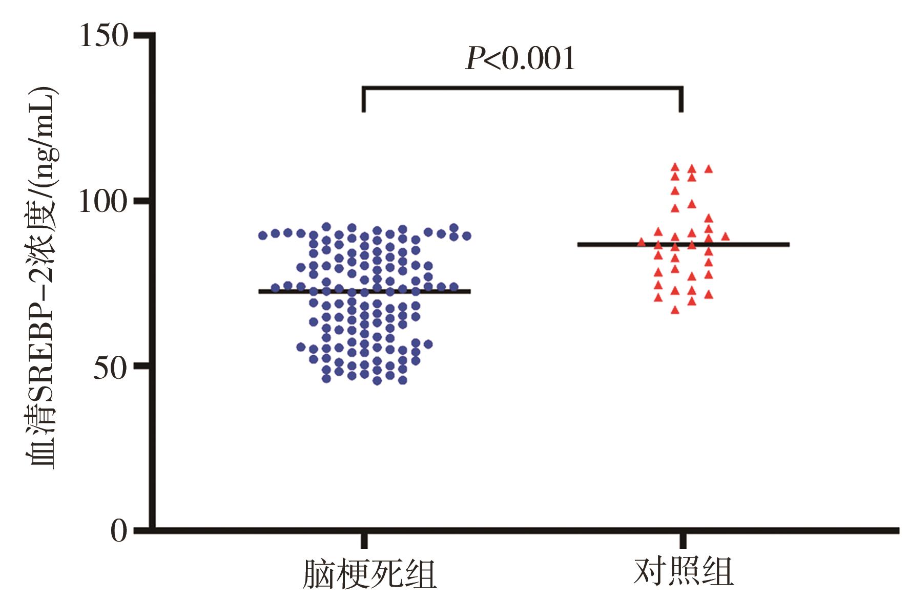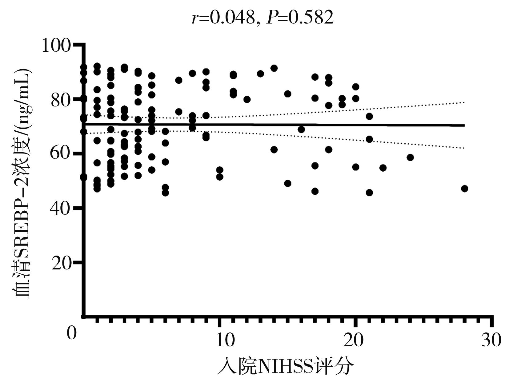 摘要:目的 探讨血清固醇调节元件结合蛋白2(sterol regulatory element binding protein-2,SREBP-2)与急性脑梗死的相关性。方法 纳入2020年10月至2021年3月入住的134名急性脑梗死患者和34名健康体检者。通过酶联免疫吸附实验法(enzyme-linked immunosorbent assay,ELISA)检测血清SERBP-2浓度,并依据急性卒中Org 10 172治疗试验(trial of Org 10 172 in acute stroke treatment,TOAST)分型和是否合并糖尿病进行亚组分析。使用美国国立卫生研究院卒中量表(National Institutes of Health Stroke Scale,NIHSS)评分评估患者的病情严重程度,并分析血清SREBP-2与病情严重程度的相关性。使用改良Rankin量表评估患者的90 d功能预后,并将患者分为预后良好组和预后不良组,比较2组的血清SREBP-2浓度差异,并通过logistic回归分析血清SREBP-2是否与脑梗死预后相关。结果 脑梗死组的血清SREBP-2浓度明显低于对照组[72.60(57.50,83.35) ng/mL vs. 86.80(77.20,97.90) ng/mL,P=0.000]。血清SREBP-2浓度识别急性脑梗死患者和健康人群的曲线下面积为0.782(P=0.000)。大动脉粥样硬化型、心源性栓塞型、小动脉闭塞型脑梗死血清SREBP-2浓度均明显低于对照组(P=0.000,P=0.003,P=0.000)。合并糖尿病患者的血清SREBP-2高于不合并糖尿病的患者(P=0.021)。血清SREBP-2浓度与入院NIHSS评分无相关性(P>0.05)。脑梗死患者预后良好组血清SREBP-2浓度较预后不良组低,但差异无统计学意义(P>0.05),logistic回归分析显示血清SREBP-2浓度与脑梗死90 d功能预后无关(OR=1.016,95%CI=0.991~1.042,P=0.205)。结论 血清SREBP-2浓度在急性脑梗死患者中明显下降。血清SREBP-2对识别脑梗死患者与健康人群具有一定的效能。然而,血清SREBP-2浓度与患者病情严重程度和预后无关。