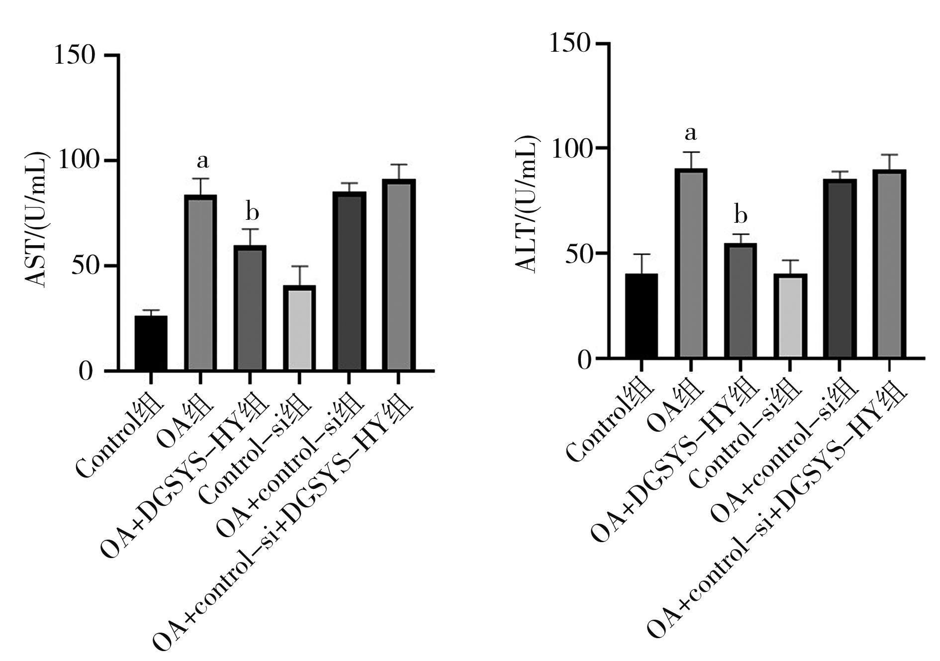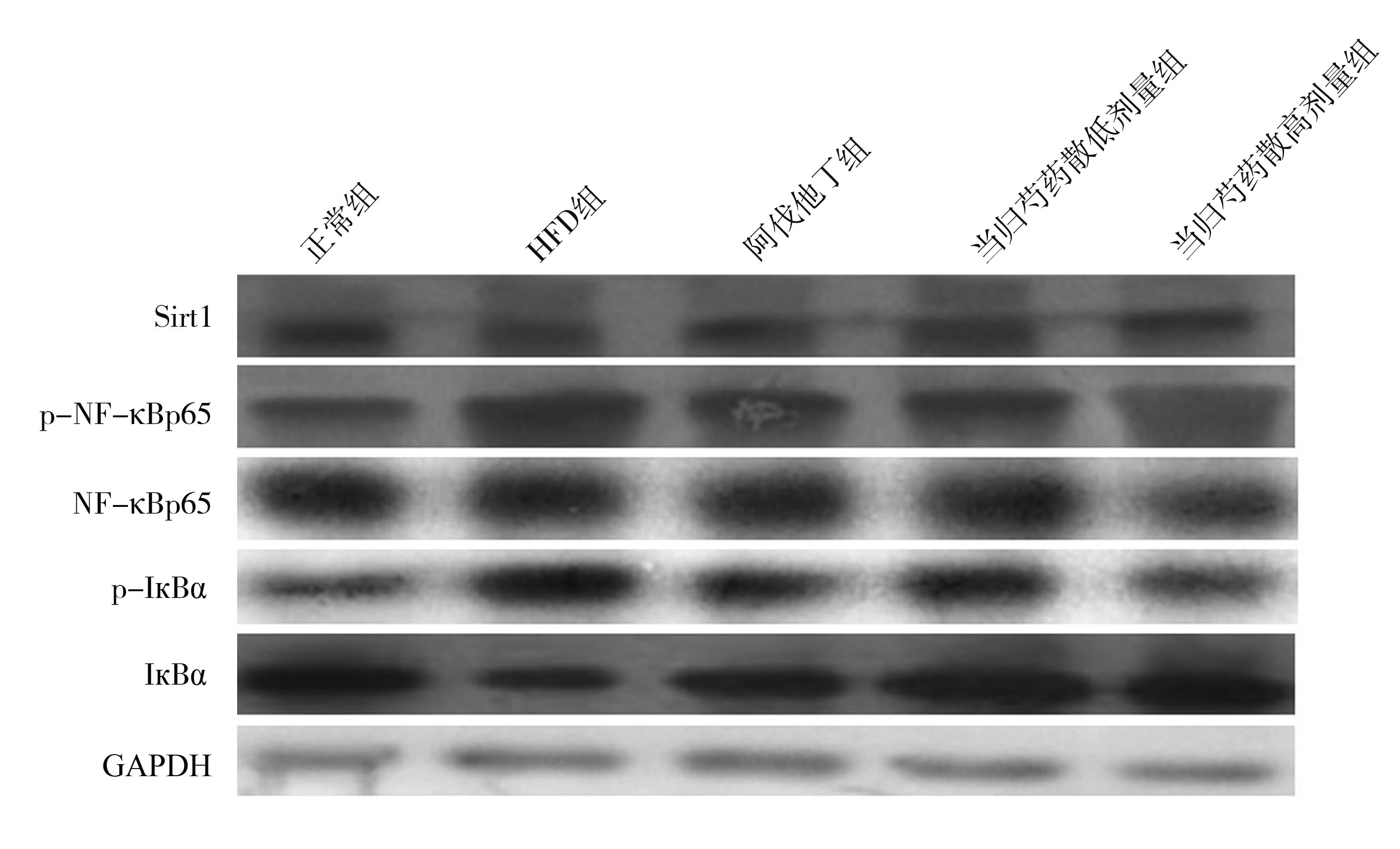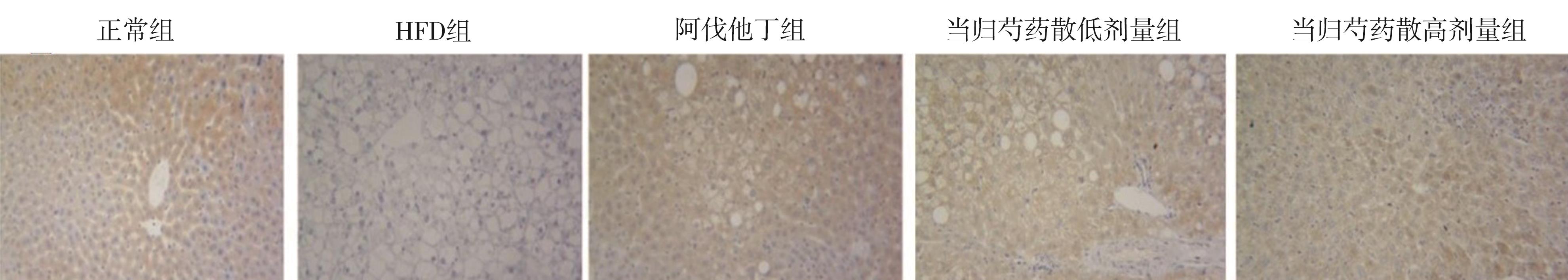 摘要:目的 研究当归芍药散治疗高脂饮食(high-fat diet,HFD)诱导的大鼠非酒精性脂肪性肝病(nonalcoholic fatty liver disease,NAFLD)炎症反应的作用机制。方法 将大鼠随机分为5组:正常组、HFD组、阿伐他丁组、当归芍药散低剂量组、当归芍药散高剂量组。大鼠给予高脂肪饲料(59.3%脂肪饲料)6周,正常组大鼠同时给予正常饲料。从第5周开始,阿伐他丁组大鼠灌胃给予25 mg/kg阿伐他丁2周,当归芍药散低剂量组大鼠灌胃给予12.9 g/kg当归芍药散2周,当归芍药散高剂量组大鼠灌胃给予25.8 g/kg当归芍药散2周,检测大鼠血清丙氨酸氨基转移酶(alanine aminotransferase,ALT)、天冬氨酸氨基转移酶(aspartate aminotransferase,AST)、甘油三酯(triglyceride,TG)、胆固醇(cholesterol,TC)、血清细胞因子水平。同时检测大鼠肝脏沉默信息调节因子1(sirtuin 1,Sirt1)/核转录因子-κB(nuclear factor kappa-B,NF-κB)信号通路蛋白表达。结果 与模型组比较,当归芍药散能显著降低血清ALT、AST、TG、TC、血清细胞因子水平,改善肝脏组织病理学改变。此外,显著增加大鼠肝脏Sirt1表达,抑制肝脏NF-κB蛋白表达。结论 当归芍药散通过Sirt1/NF-κB通路治疗HFD大鼠NAFLD。