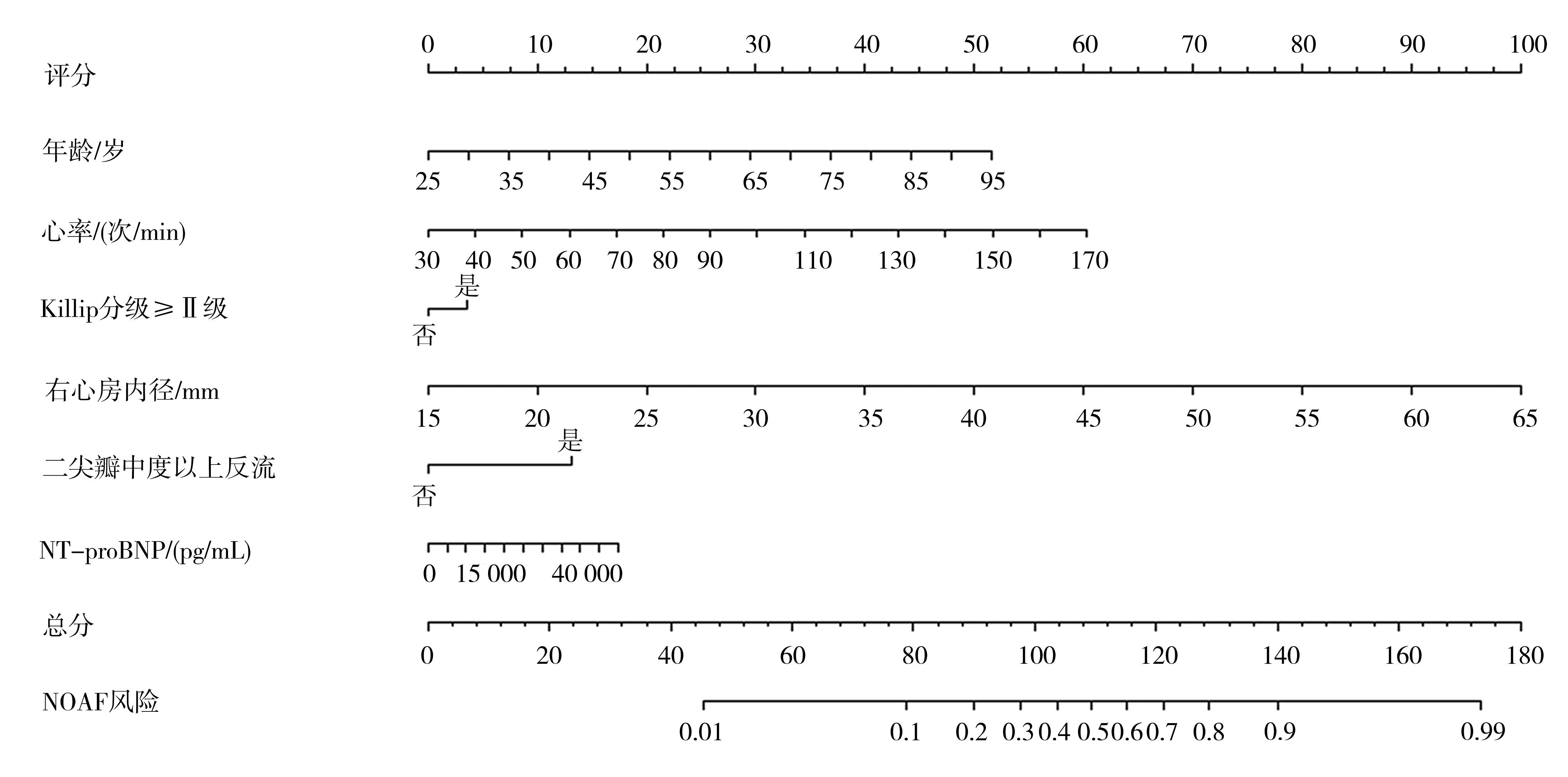 摘要:目的 探究急性ST段抬高型心肌梗死(ST-segment elevation myocardial infarction,STEMI)患者新发心房颤动(new-onset atrial fibrillation,NOAF)的风险预测模型构建并验证,以便为尽早发现高风险人群、及时采取干预措施提供依据。方法 选取2017年1月至2021年12月在重庆市第四人民医院心血管内科住院的1 080名STEMI患者,其中院内新发房颤患者作为NOAF组(n=87),从未发生NOAF的STEMI患者中随机抽取一部分作为对照组(n=199),比较2组患者人口学特征及入院时临床资料,利用LASSO回归模型分析STEMI患者发生院内新发心房颤动的风险因素。对纳入的患者按7∶3的比例划分为模型组及验证组,建立个性化的院内NOAF预测模型并进行验证。结果 LASSO回归结果提示,年龄、入院心率、Killip分级≥II级、右房内径、二尖瓣中度以上反流、氨基末端脑钠肽前体(N-terminal pro-B-type natriuretic peptide,NT-proBNP)为STEMI患者发生院内NOAF的重要预测因素(P<0.05)。利用上述6个预测指标构建列线图模型。模型组曲线下面积(area under the curve,AUC)为 0.842(95%CI=0.780~0.905),准确度为0.840(95%CI=0.782~0.888);验证组 AUC 为 0.858(95%CI=0.774~0.943),准确度为0.826(95%CI=0.729~0.899)。同时,校准曲线提示预测模型的校正能力良好。结论 本研究成功构建了STEMI患者院内发生NOAF风险的预测模型,经相关指标证实该预测模型具有较好的预测效率和临床适用性。利用列线图可方便直观地协助临床医护人员筛选高NOAF风险患者,制定针对性的干预措施,为早期防治和改善预后提供依据。