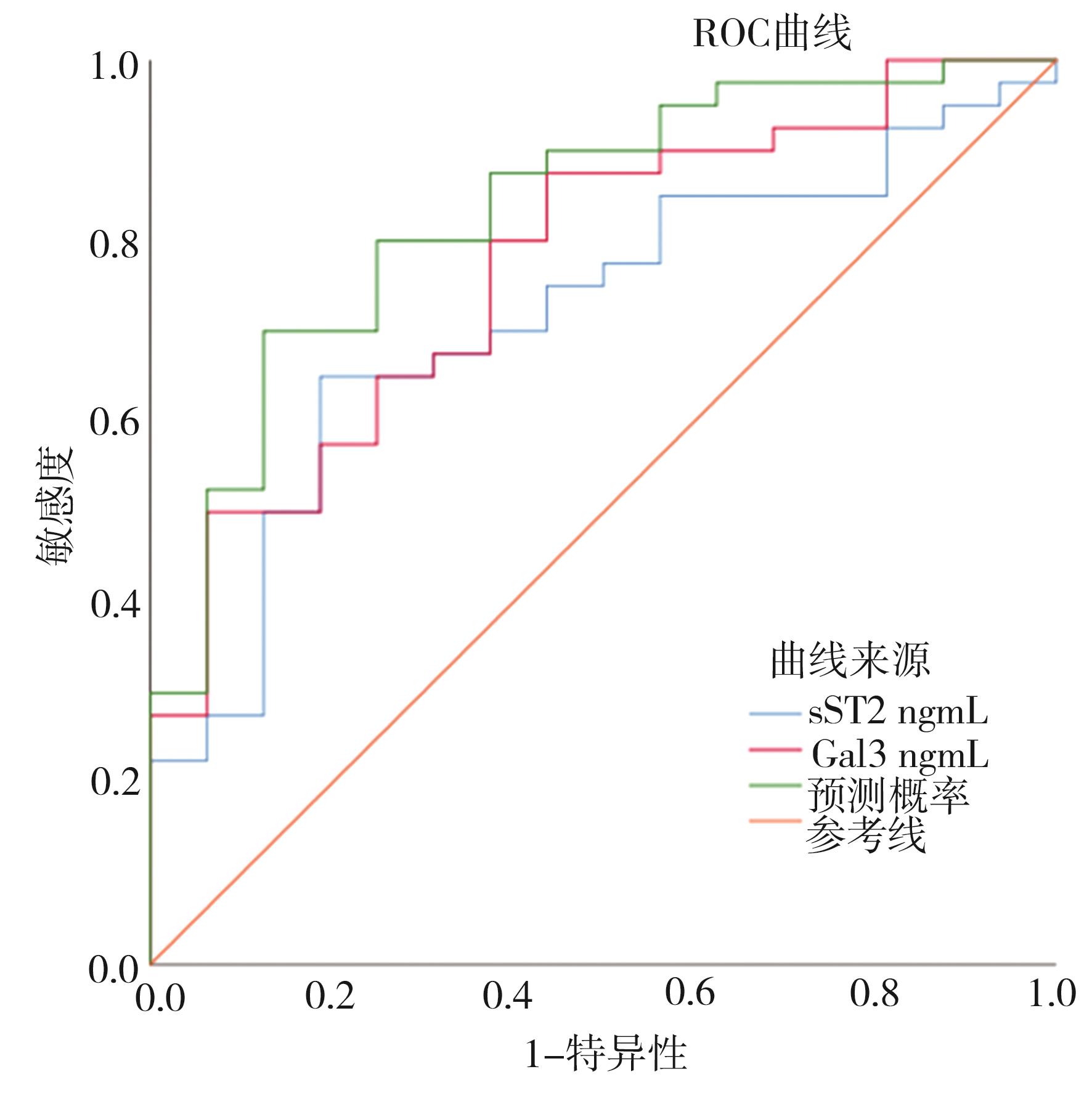 摘要:目的 探讨冠心病(coronary artery disease,CAD)患者可溶性生长刺激表达基因2蛋白(soluble growth stimulation expressed gene 2,sST2)、半乳糖凝集素-3(galectin-3,Gal-3)与心肌纤维化(myocardial fibrosis,MF)的关系,指导临床缺血性MF的评估。方法 以顺序入选2021年9月至2022年9月在重庆医科大学附属第二医院科住院的冠心病受试者56例非冠心病患者31例为研究对象,根据心血管磁共振-延迟钆增强(cardiovascular magnetic resonance-late gadolinium enhancement,CMR-LGE)将冠心病组分为心肌纤维化(LGE阳性)亚组和非心肌纤维化(LGE阴性)亚组。收集所有受试者的一般临床资料。所有受试者均通过酶联免疫吸附法测定血清sST2、Gal-3水平。分析sST2、Gal-3与CMR-LGE结果的相关性。结果 ①CAD组患者sST2、Gal-3、血压、肌酐、尿酸、室间隔厚、糖化血红蛋白、CAS评分高于非CAD组患者(P<0.05),而肾小球滤过率、高密度脂蛋白低于非CAD患者(P<0.05)。②LGE阳性亚组sST2、Gal-3、B型利钠肽原水平较LGE阴性亚组高(P<0.05),高密度脂蛋白较LGE阴性亚组低(P<0.05)。③LGE与sST2(r