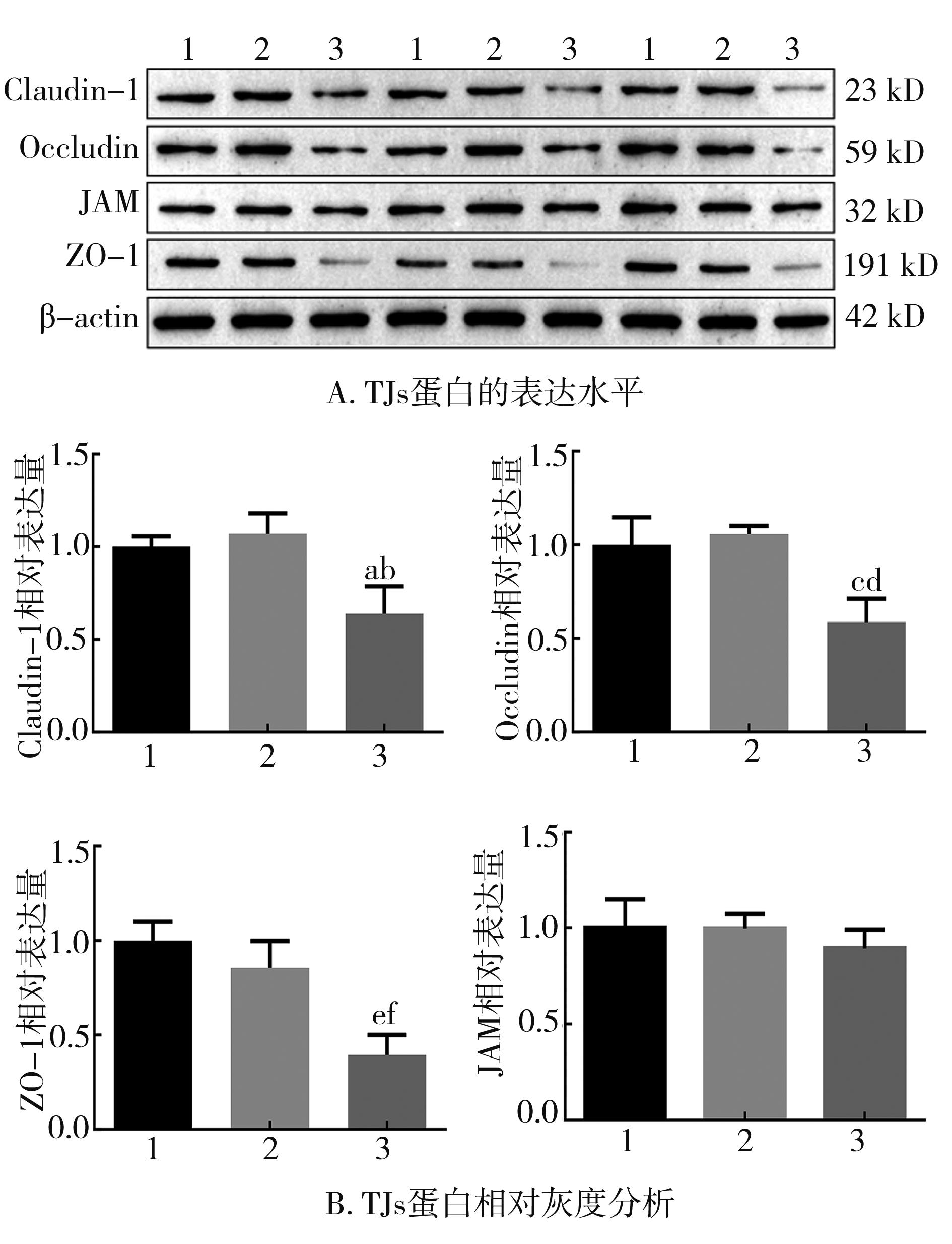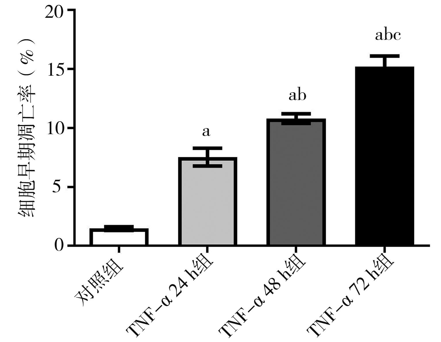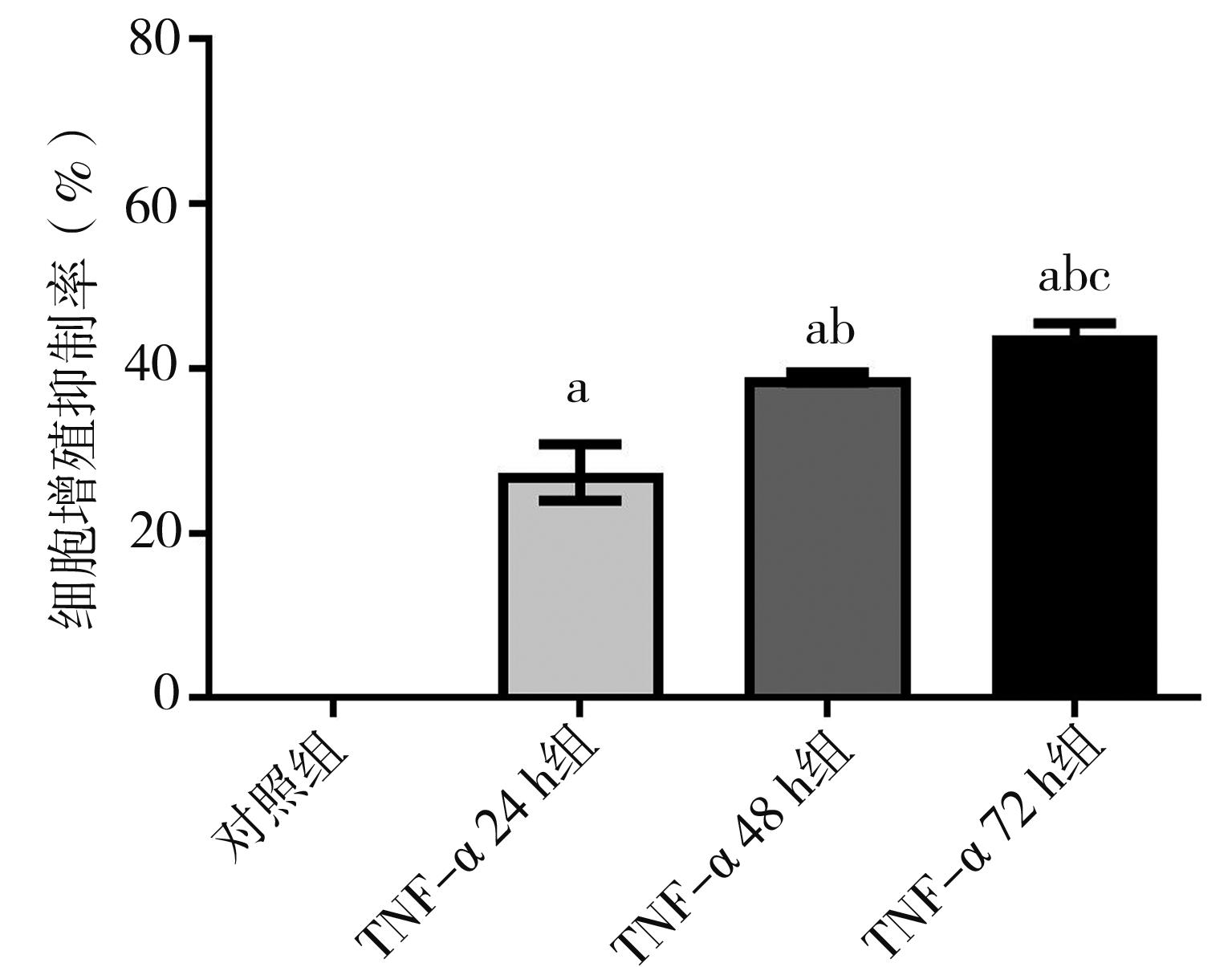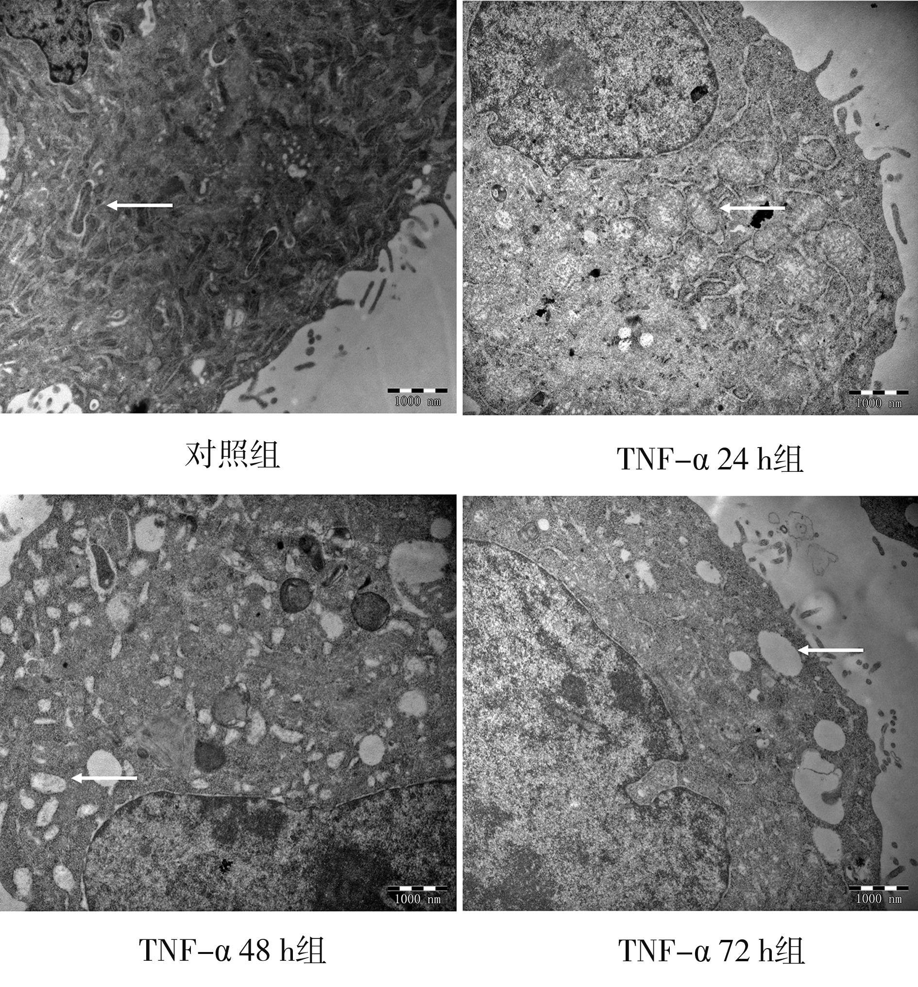 摘要:目的 研究肿瘤坏死因子-α(tumor necrosis factor-α,TNF-α)对大鼠肺微血管内皮细胞紧密连接蛋白1(zonula occludens-1,ZO-1)、Claudin-5表达的影响,探讨TNF-α对大鼠肺血管屏障的损伤机制。方法 将体外培养的大鼠肺微血管内皮细胞分为对照组、TNF-α 24 h、48 h和72 h组(TNF-α 10 mg/L)。透射电镜观察大鼠肺微血管内皮细胞超微结构。MTT法及流式细胞仪分别测定各组细胞的增殖抑制率及凋亡率。免疫荧光法测定ZO-1及Claudin-5的分布。RT-qPCR及Western blot测定各组细胞ZO-1及Claudin-5的mRNA及蛋白表达。结果 对照组内皮细胞含有大量的线粒体及内质网等结构,结构正常。TNF-α各组细胞线粒体数量减少,线粒体肿胀,嵴溶解,核固缩,凋亡细胞增多,细胞增殖抑制率及凋亡率较对照组增加(均P<0.05),呈时间依赖性。ZO-1及Claudin-5呈线状荧光分布于内皮细胞间连接部位。与对照组比较,TNF-α各组细胞ZO-1的转录及表达水平均降低(均P<0.05)。TNF-α各组Claudin-5的转录水平较对照组明显降低(均P<0.05),TNF-α 48 h、72 h组Claudin-5的蛋白表达水平较对照组降低(均P<0.05),TNF-α 24 h组与对照组比较差异无统计学意义(P>0.05)。结论 TNF-α下调大鼠微血管内皮细胞ZO-1及Claudin-5的表达,诱导细胞损伤及凋亡,破坏肺屏障,导致肺损伤。