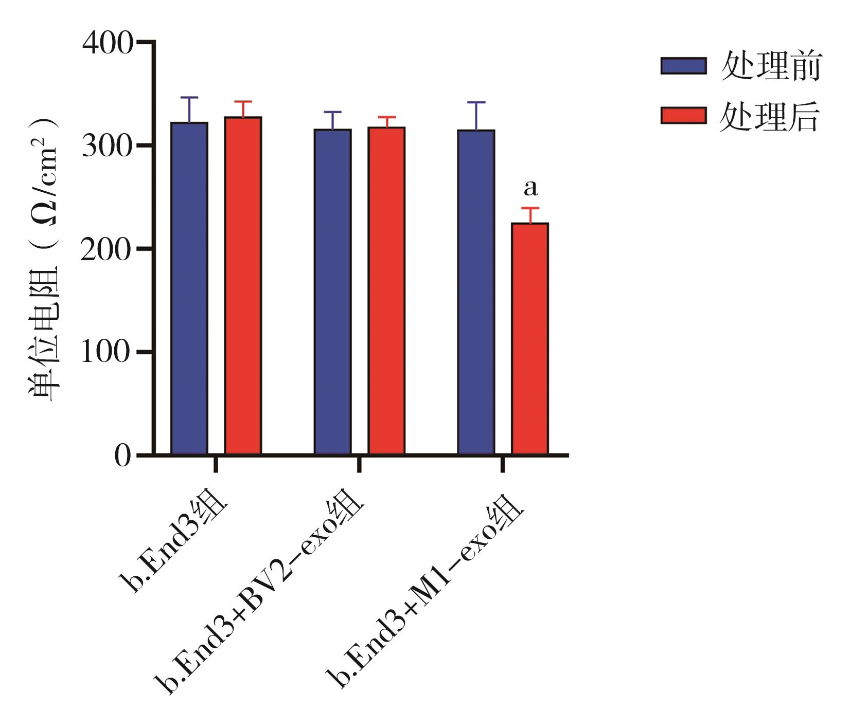 摘要:目的 研究M1表型的小胶质细胞外泌体(M1 microglia-derived exosome,M1-exo)对体外血脑屏障(blood-brain barrier,BBB)功能及血管内皮细胞间紧密连接蛋白表达的影响。方法 用脂多糖(lipopolysaccharide,LPS)刺激小鼠小胶质细胞来源的细胞系BV2细胞,流式技术检测其向M1型极化情况,分离提取外泌体。用小鼠脑微血管内皮细胞系b.End3细胞与原代培养的小鼠星形胶质细胞构建体外BBB模型,随机分为3组:b.End3细胞正常培养组(b.End3组)、b.End3细胞+25 μg/mL正常BV2细胞来源外泌体(BV2-derived exosome,BV2-exo)组(b.End3+BV2-exo组)、b.End3细胞+25 μg/mL M1表型的小胶质细胞来源外泌体组(b.End3+M1-exo组)。按实验分组将不同来源外泌体与BBB模型共培养,检测各组的跨膜电阻(trans-endothelial electrical resistance,TEER)、荧光黄通过率,免疫印迹法(Western blot,WB)检测紧密连接复合物蛋白Claudin-1、Occludin、ZO-1及JAM蛋白的表达。结果 ①小胶质细胞向M1型极化成功,其细胞标志物CD16/32阳性率较对照组明显升高(P=0.023);②与M1-exo共培养后,体外BBB模型的TEER明显下降(P=0.000),对荧光黄的透过率明显增加(P=0.000);③与b.End3组和b.End3 + BV2-exo组相比,b.End3+M1-exo组的Claudin-1、Occludin及ZO-1蛋白的表达水平明显下降。结论 M1-exo可以破坏BBB的完整性,影响其功能。
