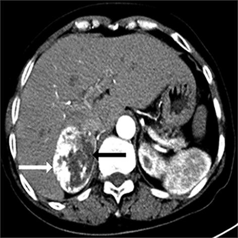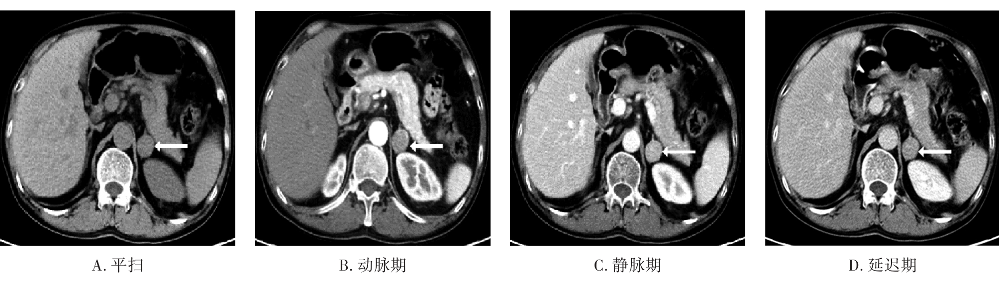 摘要:目的 分析生化阴性嗜铬细胞瘤及副神经节瘤(pheochromocytomas and paragangliomas,PPGLs)的电子计算机断层扫描(computed tomography,CT)征象是否有别于生化阳性PPGLs,同时了解生化阳性PPGLs不同表型的CT征象是否存在差异。方法 回顾性分析131例PPGLs患者的术前腹部增强CT图像,包括肿瘤位置、大小、形态、囊变坏死、液-液分层、钙化、向心结节状强化、肿瘤内粗大血管、强化包膜、绝对廓清率及相对廓清率。根据生化水平,将患者分为生化阳性组和阴性组,阳性组进一步分为去甲肾上腺素型、肾上腺素型及多巴胺型。比较各组及各表型间的CT征象差异。结果 相较于生化阴性组,阳性组PPGLs更大(Z=-2.064,P=0.039)、囊变坏死(χ2=6.610,P=0.010)及向心结节状强化(χ2=3.909,P=0.048)的比例更高;相较于去甲肾上腺素型,肾上腺素型PPGLs更大(Z=-2.036,P=0.042)、强化包膜比例更高(χ2=7.242,P=0.007)。结论 肿瘤大小、囊变坏死及向心结节状强化的CT征象有助于术前诊断生化阴性PPGLs,肿瘤大小及强化包膜有助于解释去甲肾上腺素型及肾上腺素型PPGLs不同临床表现产生的机制。