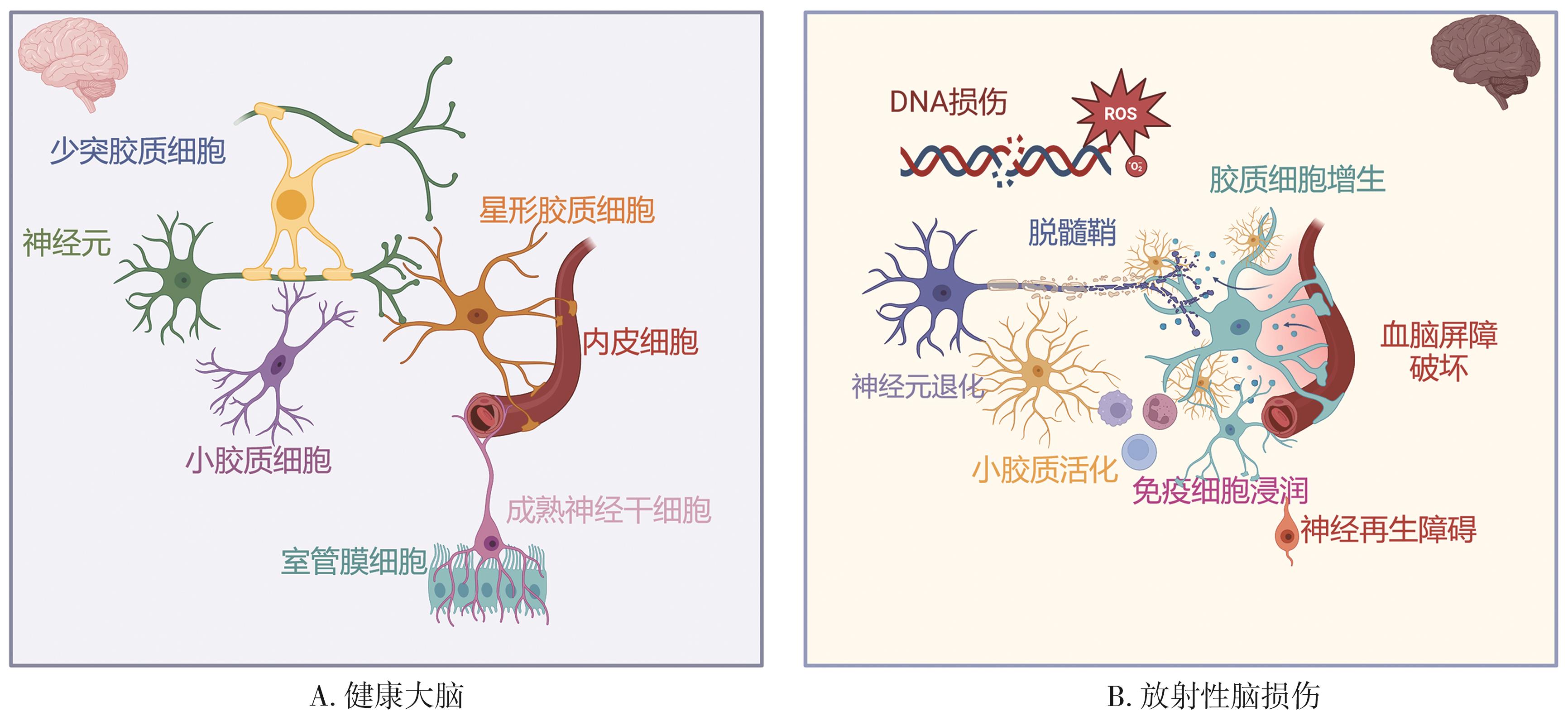 摘要:放射治疗在控制头颈部肿瘤提高患者生存率的同时,对周围正常脑组织也造成不同程度的损伤,引起放射性脑坏死和认知功能下降,其发生率最高可达90%,严重影响患者的生活质量。研究人员近年来在多个层面上对放射性脑损伤的潜在病因进行了探索,通过筛查和鉴定不同干预靶点,为预防和治疗放射性损伤提供了新的策略。本文对放射性脑损伤的发生发展机制进行了综述,并回顾了现有的药物及非药物干预手段,提出了目前该领域面临的挑战及未来的研究方向。